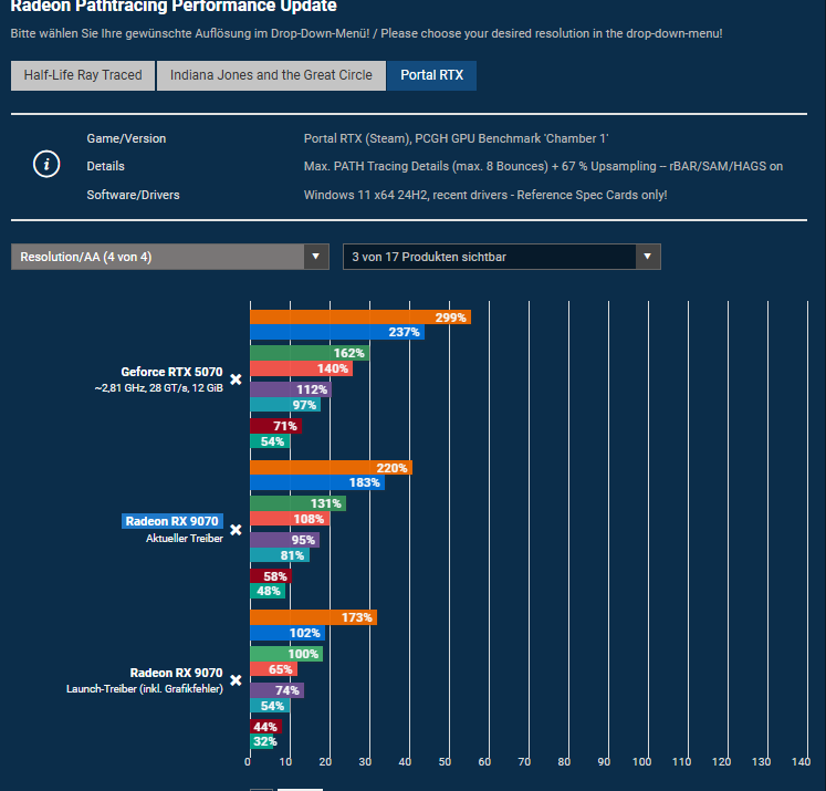 Mit Pathtracing Cherrypick und nichtmal overall sondern auch noch doppelt Cherrypicked mit einzelnen Games