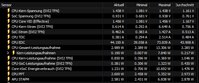 Hey welchen Chipsatz hast du oder bitte nenn einfach welches Mainboard das ist? Hast du zufällig mal den Idleverbrauch vom gesamten System aus der Steckdose gemessen? Oder vielleicht können auch andere etwas zum Idleverbrauch der Ryzen5000/7000 sagen?Skysurfa schrieb:Also mein Ryzen 5800 braucht weniger...