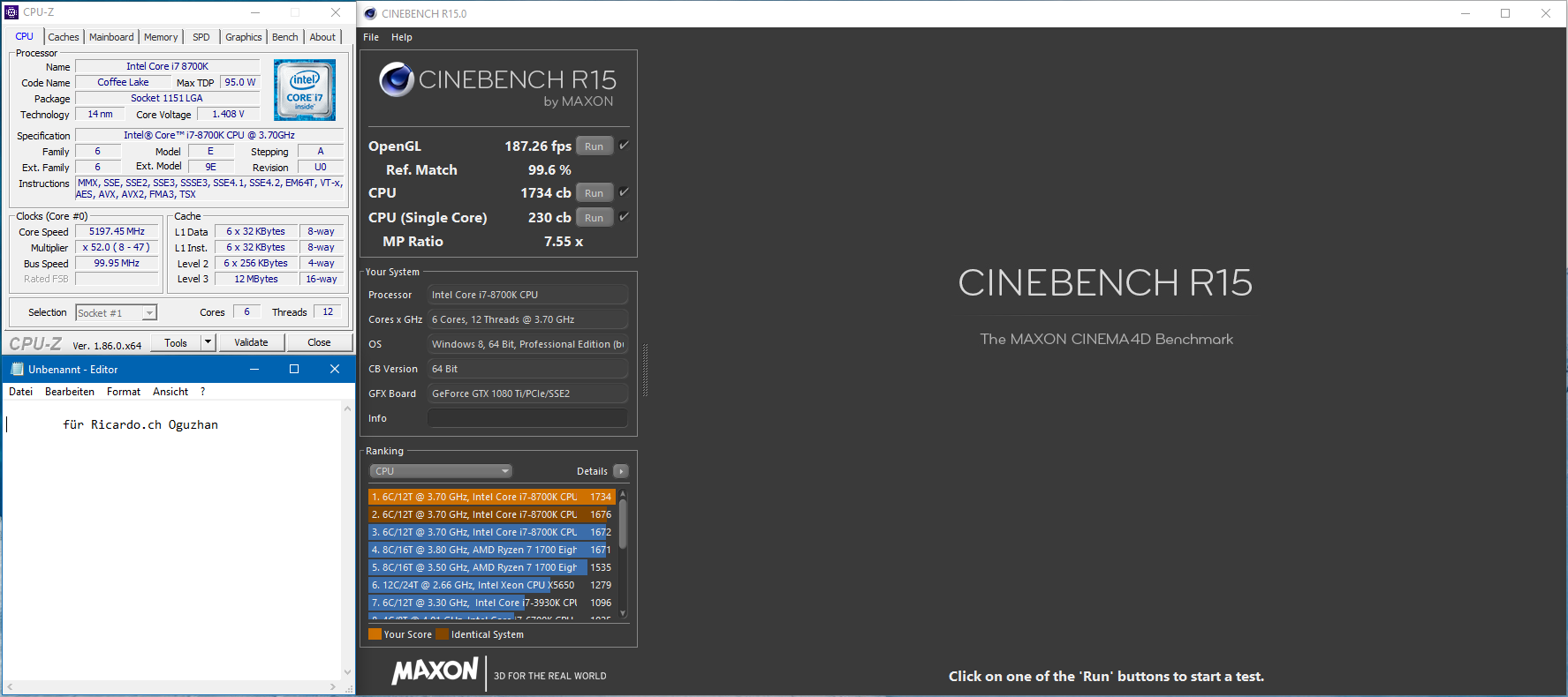 i7-8086k (5.1Ghz pretested) auf M10H + 3600 CL15 RAM - OC Story