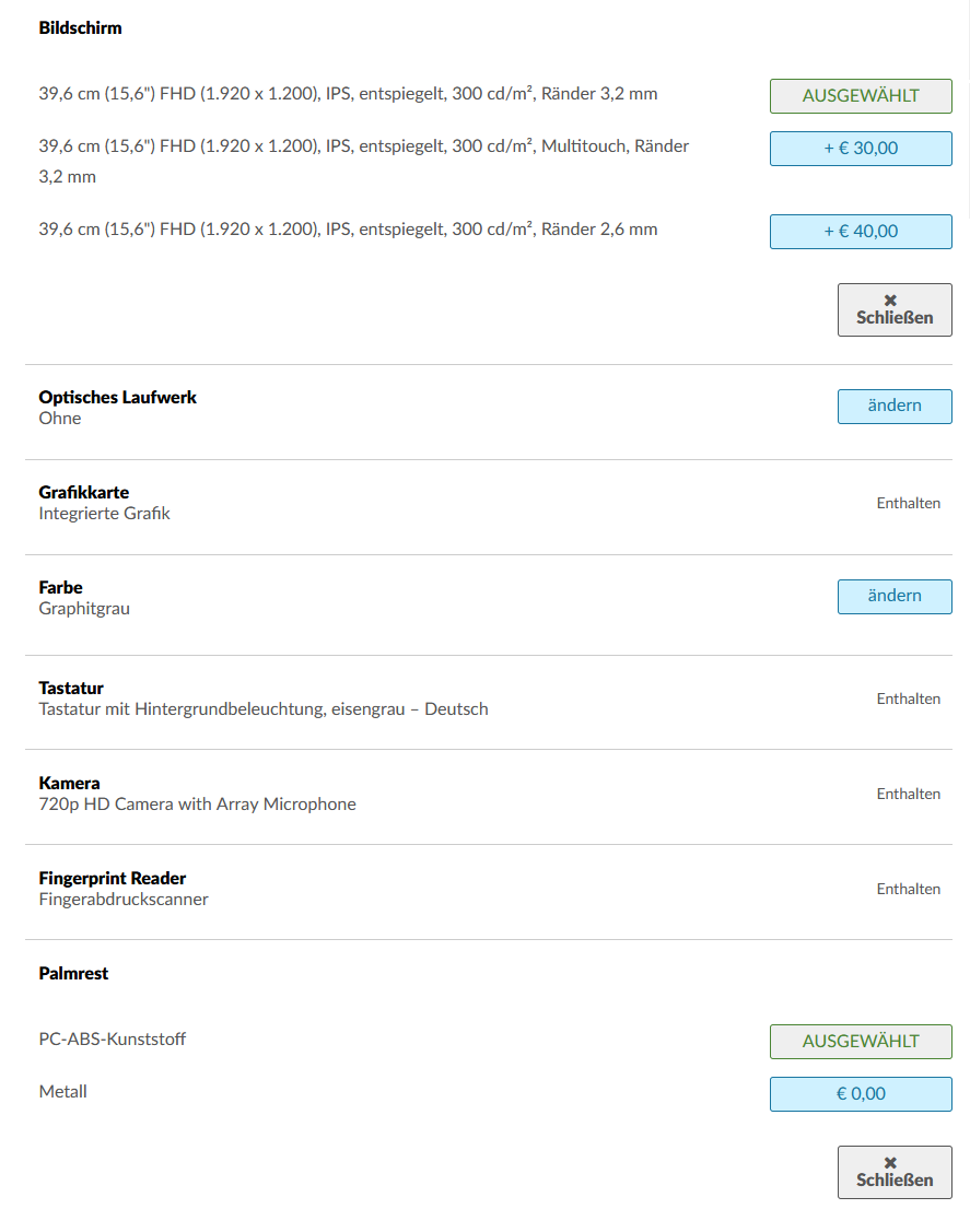 Ich kann auch Metal Palmrest aussuchen obwohl ich nicht das teuerste Display genommen habe .. ?!
