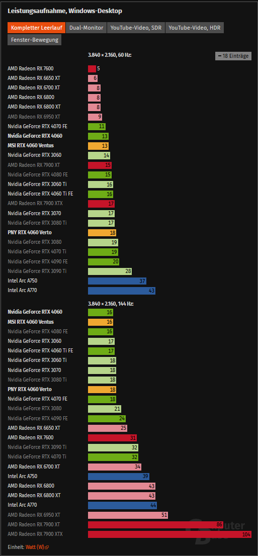 Oder siehe die 4060 mit ihren 52w Idle Powerdraw bei vielen Testern.