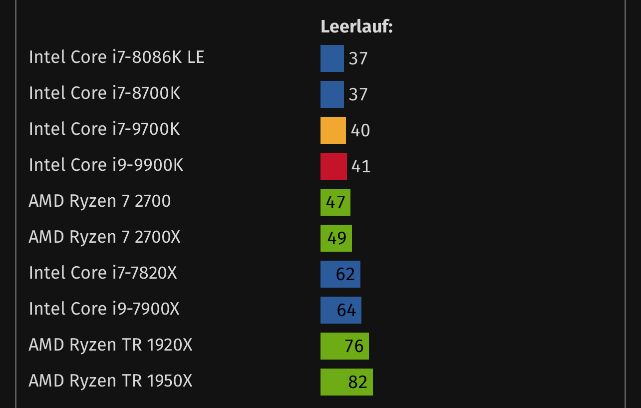 Bei jedem CPU Test sehe ich einen längeren Balken und denke mir, bei 250W kein Wunder.