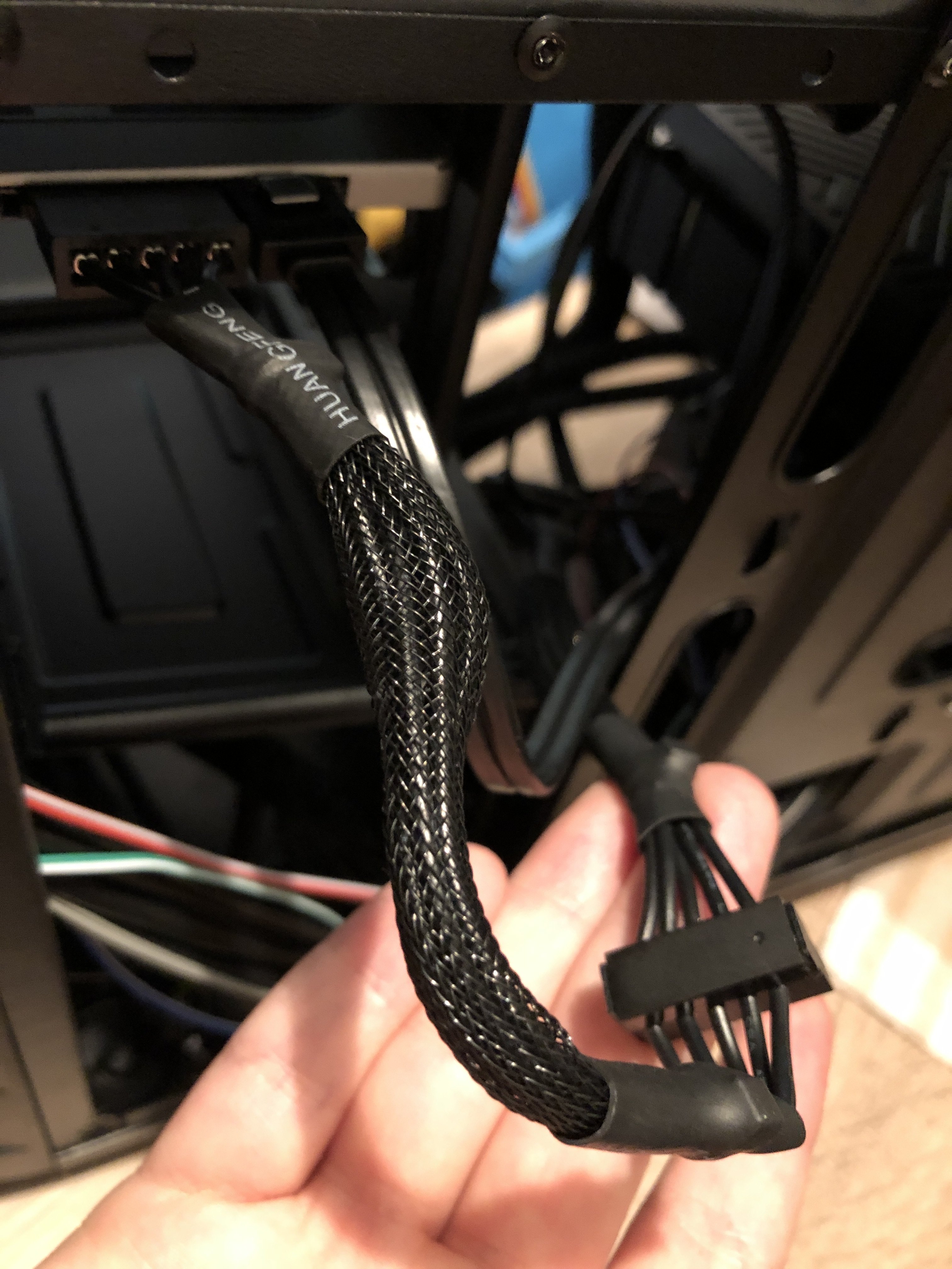 Beispielsweise bietet es sich oft an, den Winkelstecker an den SSDs/HDDs zu setzen, da dahinter oft wenig Platz ist. Hängt aber wie gesagt letztendlich vom Gehäuse ab...