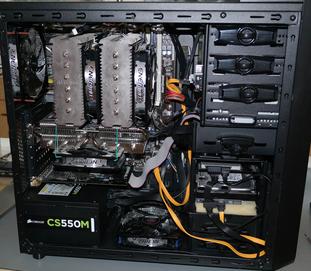 Im idle läuft nur der Hecklüfter mit ~200rpm (und der Netzteillüfter, ebenfalls ~200rpm), die anderen werden je nach Bedarf zugeschaltet.
