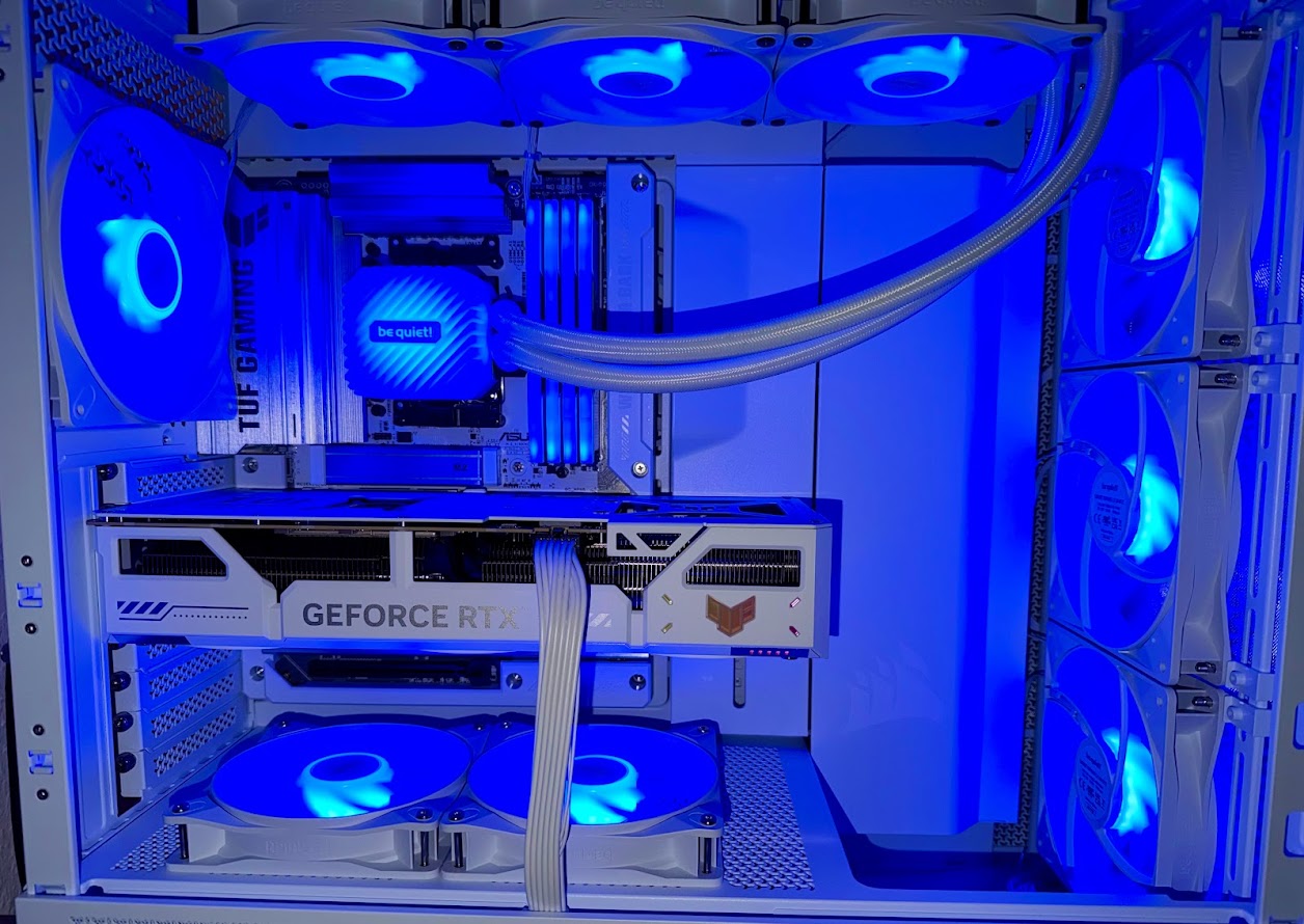 3 aufm Radiator, 3 vorne, 3 an der Seite, 3 unten und einer im Heck. Macht für mich 13 Stück die flüsterleise auch mit den 600W der RTX 5090 klarkommen. Im Silent BIOS Modus hört man die Karte kaum bis gar nicht und die Temps sind top.