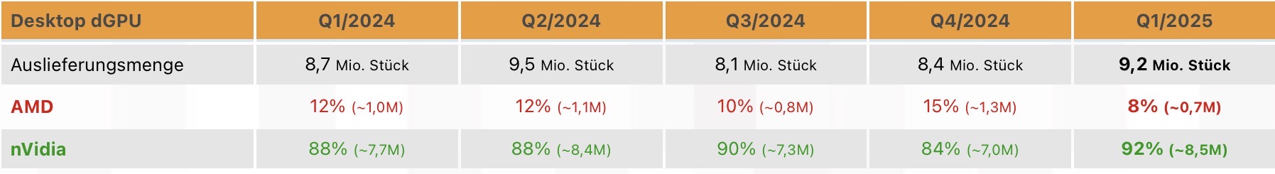 - die RX 9000 waren bereits Anfang März massig lieferbar und spielen in der Tabelle somit sehr wohl eine Rolle