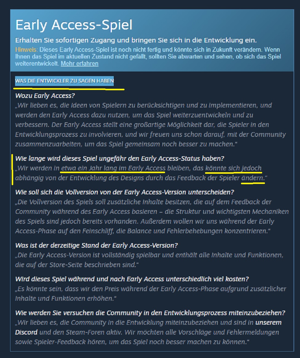 Auf der Steamseite vom Entwickler steht allerhand
