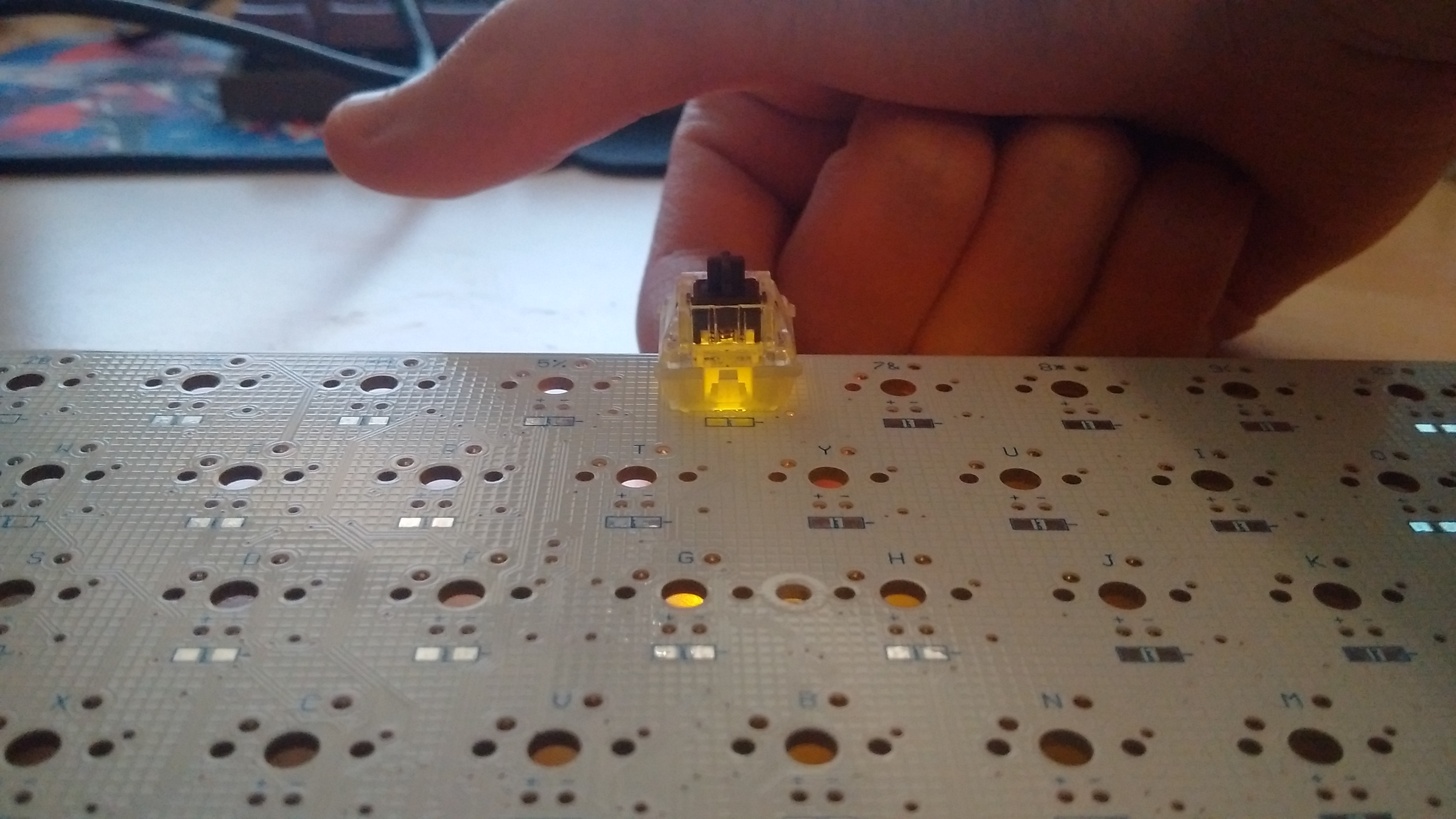 Bei der vormontierten Version mit LEDs sind die Switches ja (wie bei fast allen beleuchteten Tastaturen) "falsch" rum montiert. Also so, dass die LEDs oben sind statt unten.