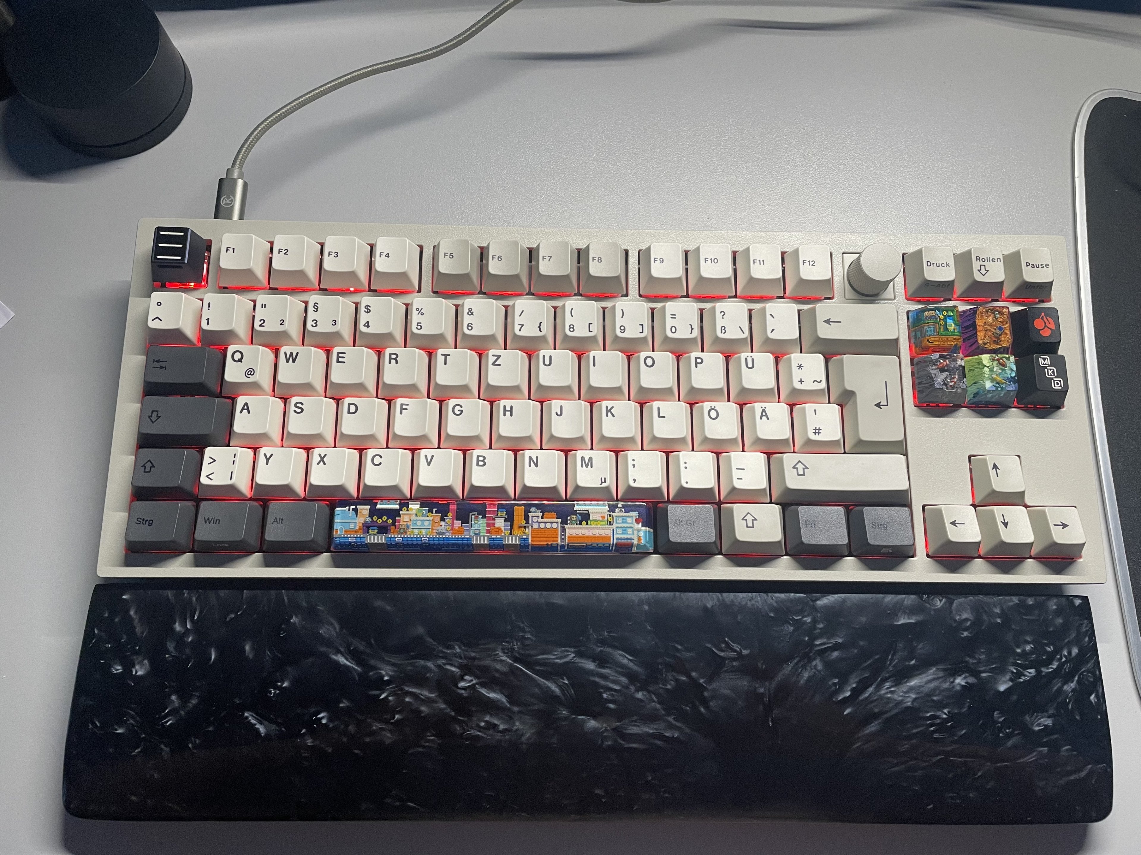 Aber im Ernst: aktuell schaut meine Keychron Q3 ja so aus (bis auf das jetzt gerade beide Win-Caps vom Keychron-Set drauf sind, ..ist die graue unterste Reihe):