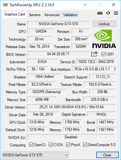 EVGA GTX 970 FTW ACX 2.0 OC @1467 MHz (s. Screenshot)