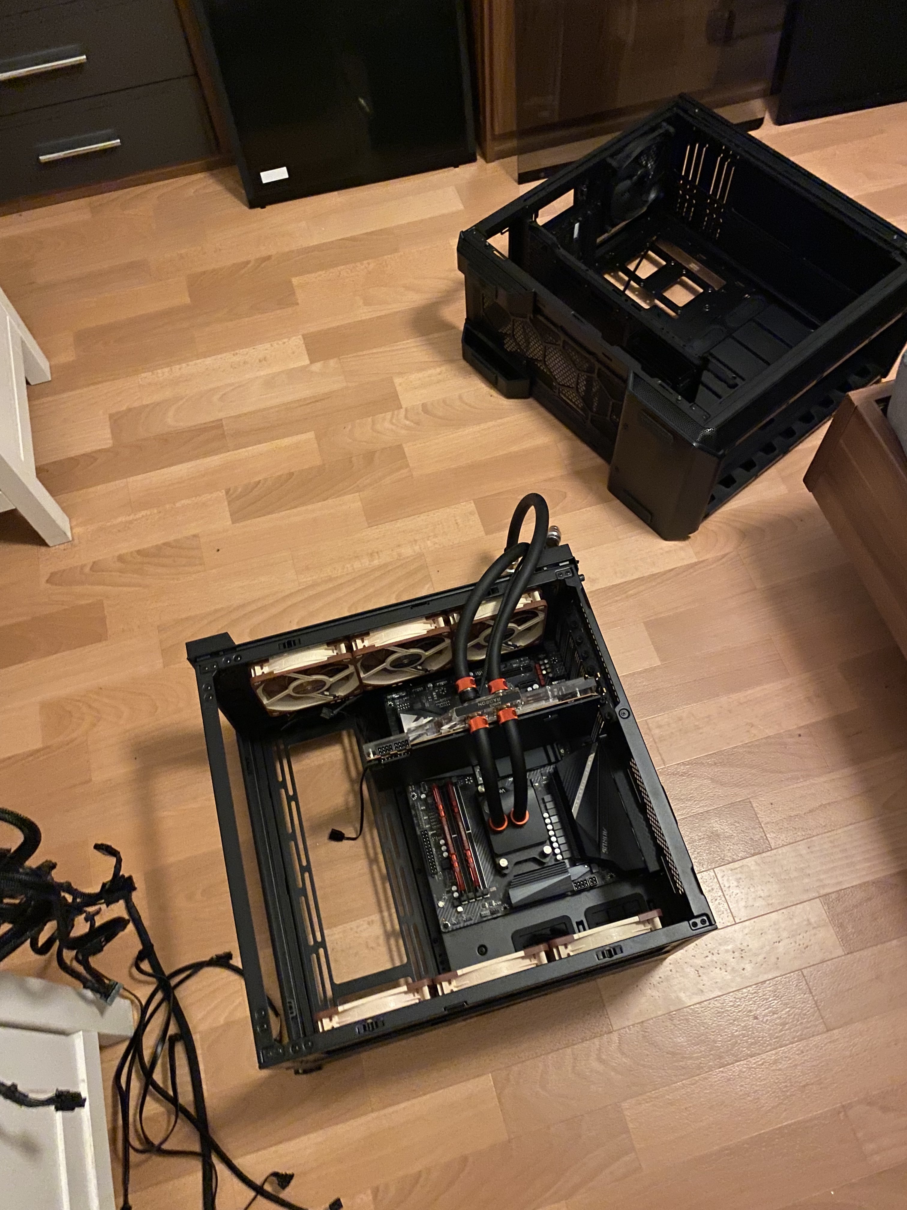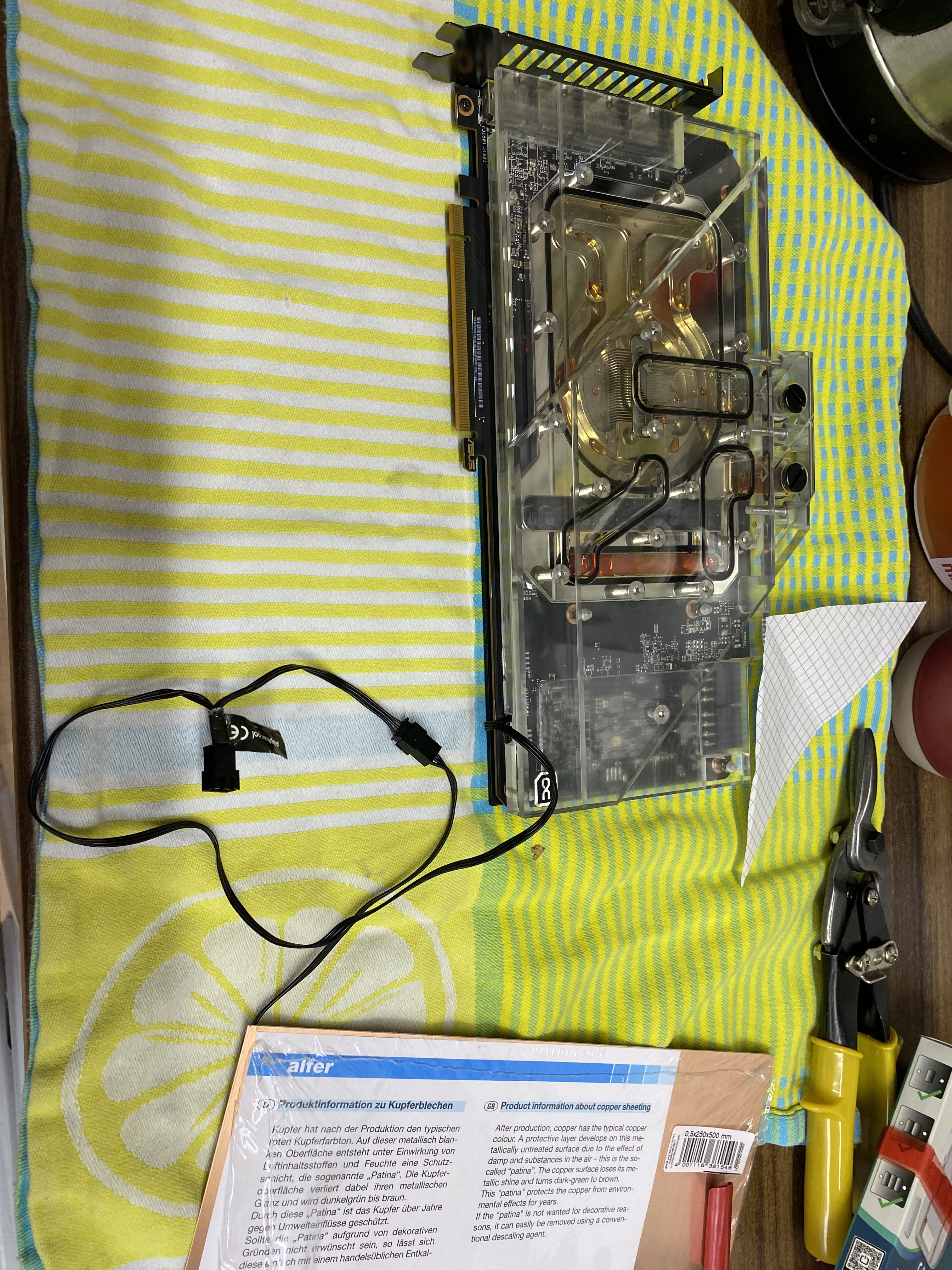 Ich hab einfach mal Board+CPU+GPU komplett ausgebaut inklusive Schläuche und Schnellkupplungen.