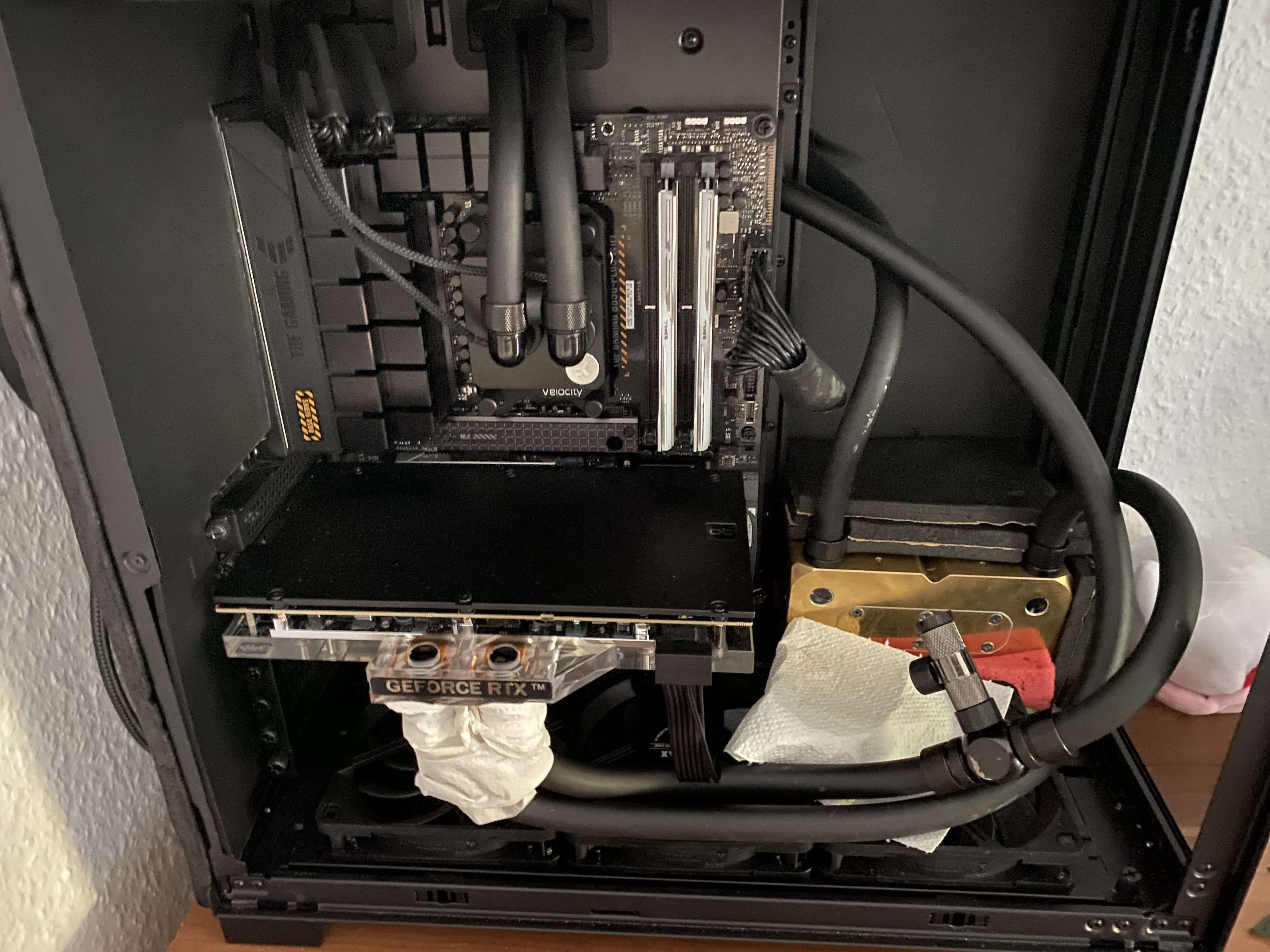 Ich halte wacker an meinem Velocity V1 fest, drunter sitzt der geschliffene 7800x3d mit Alphacool Subzero gepinselt.