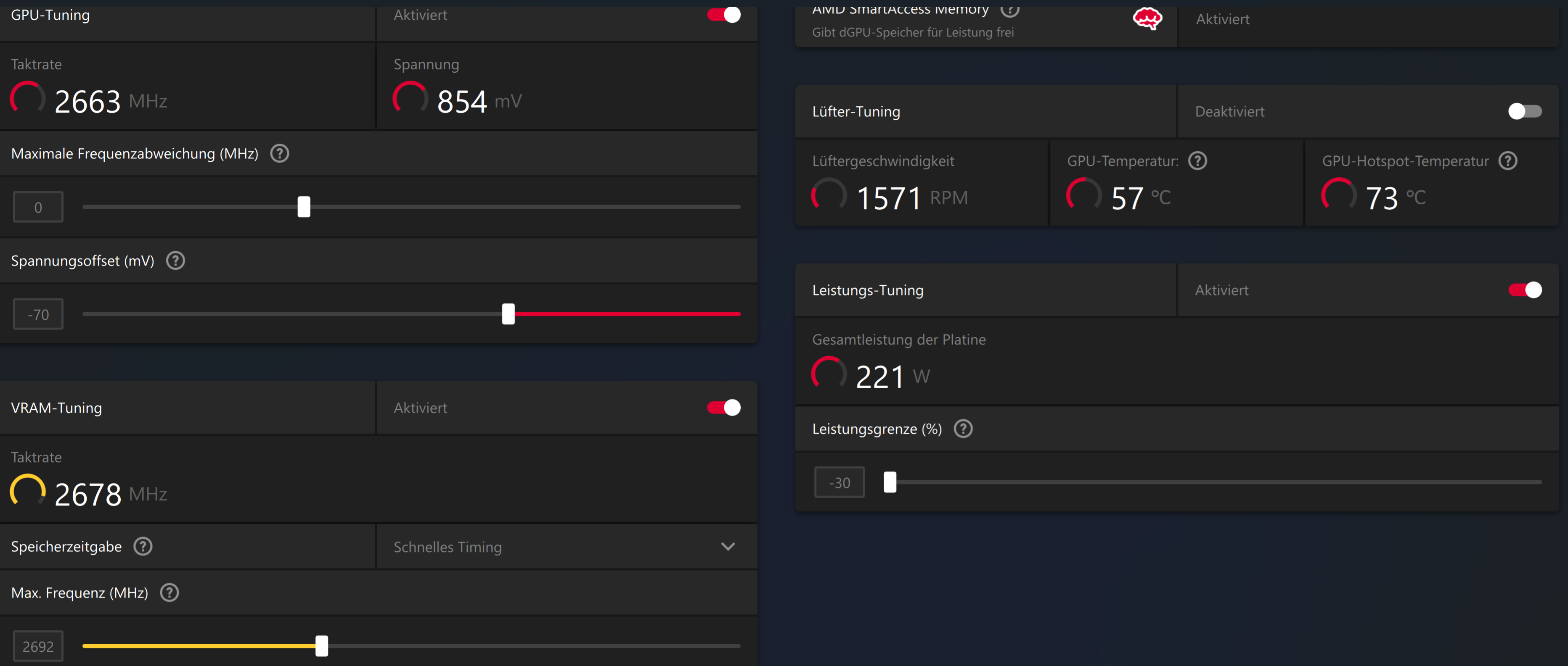 Kann es sein das man eventuell meine -80mv mit PT-20 mit -300mhz stabilisieren kann?HI. schrieb:@therealcola ach ja und Taktrate auf +250-450mhz bei +10% und -500mhz bei -30% Leistungsaufnahme.