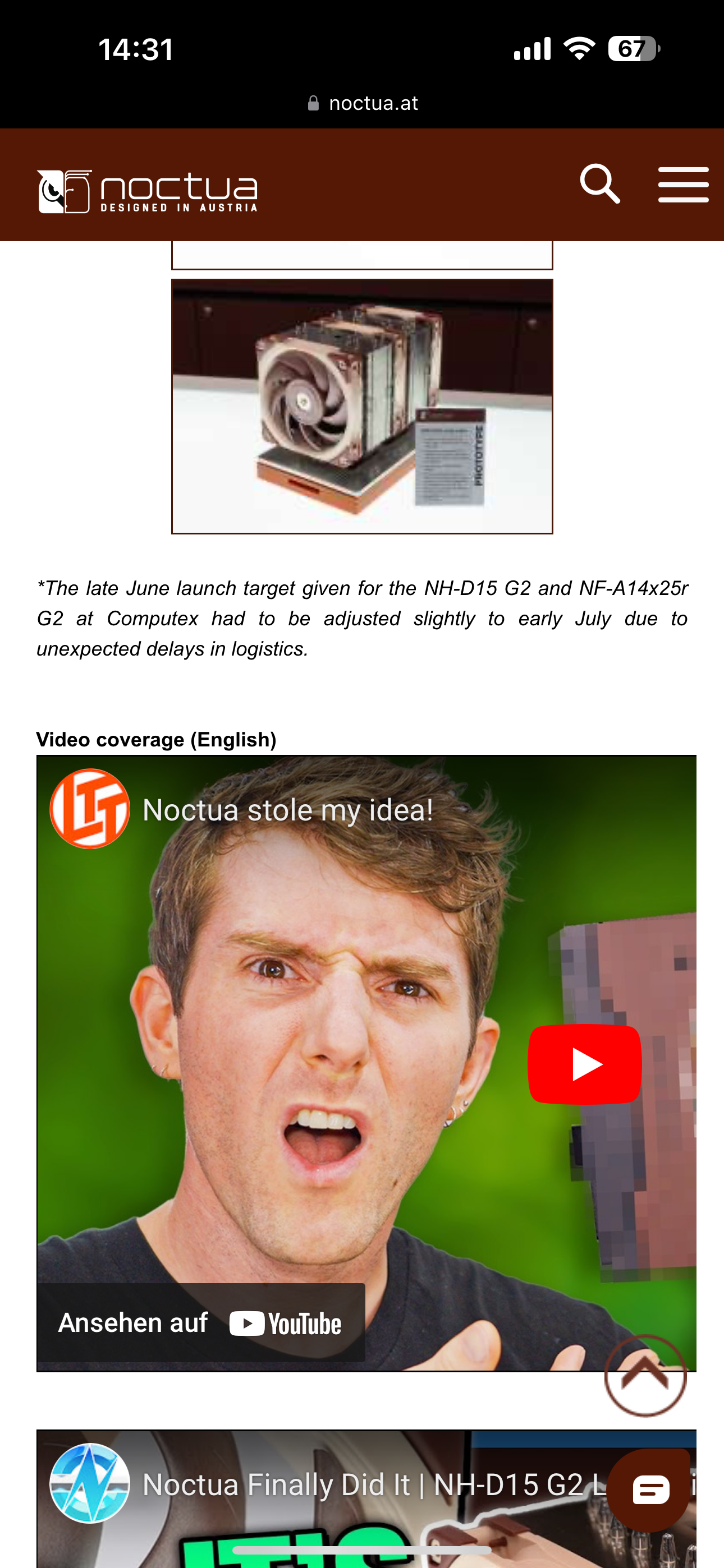 Und sie haben ja bereits Bilder von der Endfertigung/Pack/Versand gezeigt. Da müsste es schon in allerletzter Sekunde noch zu einem entdeckten Problem kommen... Halte ich für unwahrscheinlich, angesichts dessen wie penibel Noctua arbeitet. Probleme/Verzögerungen auf dem Distributionsweg liegen dann allerdings halt nicht mehr in der Hand Noctuas. Und ob der Kühler nun 1-3 Wochen früher oder später aufschlägt ist angesichts der Gesamtverzögerung wirklich absolut egal aus meiner Sicht.