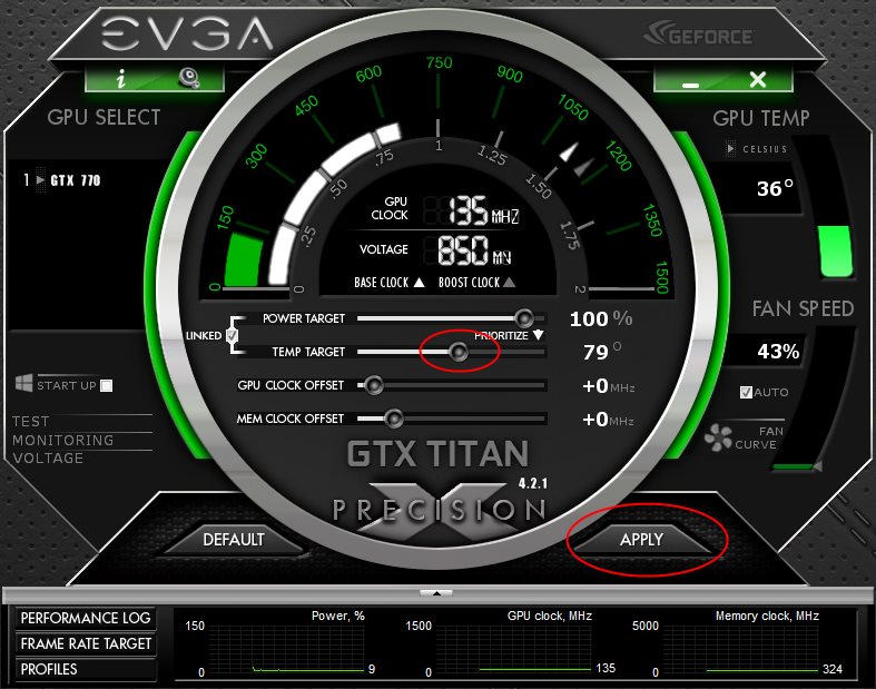 Mit der neuen Boost-Mechanik hätte ich dann gerne die 900Mhz als Minimaltakt und der Boost selbst taktet die Karte dann eben weiter rauf wenn es gebraucht wird. Dabei kann ich noch Einstellen, dass die Karte eben Maximal 70-80°C warm werden darf bei einer maximalen Lüftergeschwindigkeit von 50%.