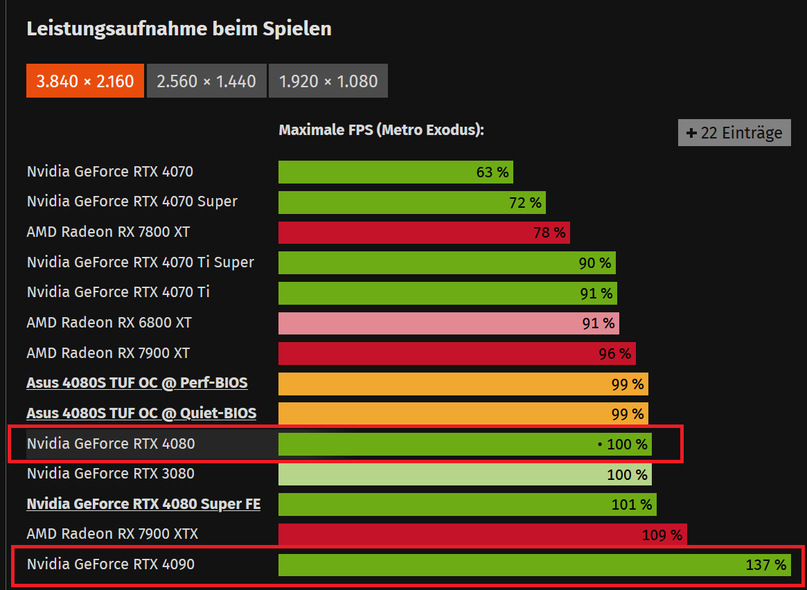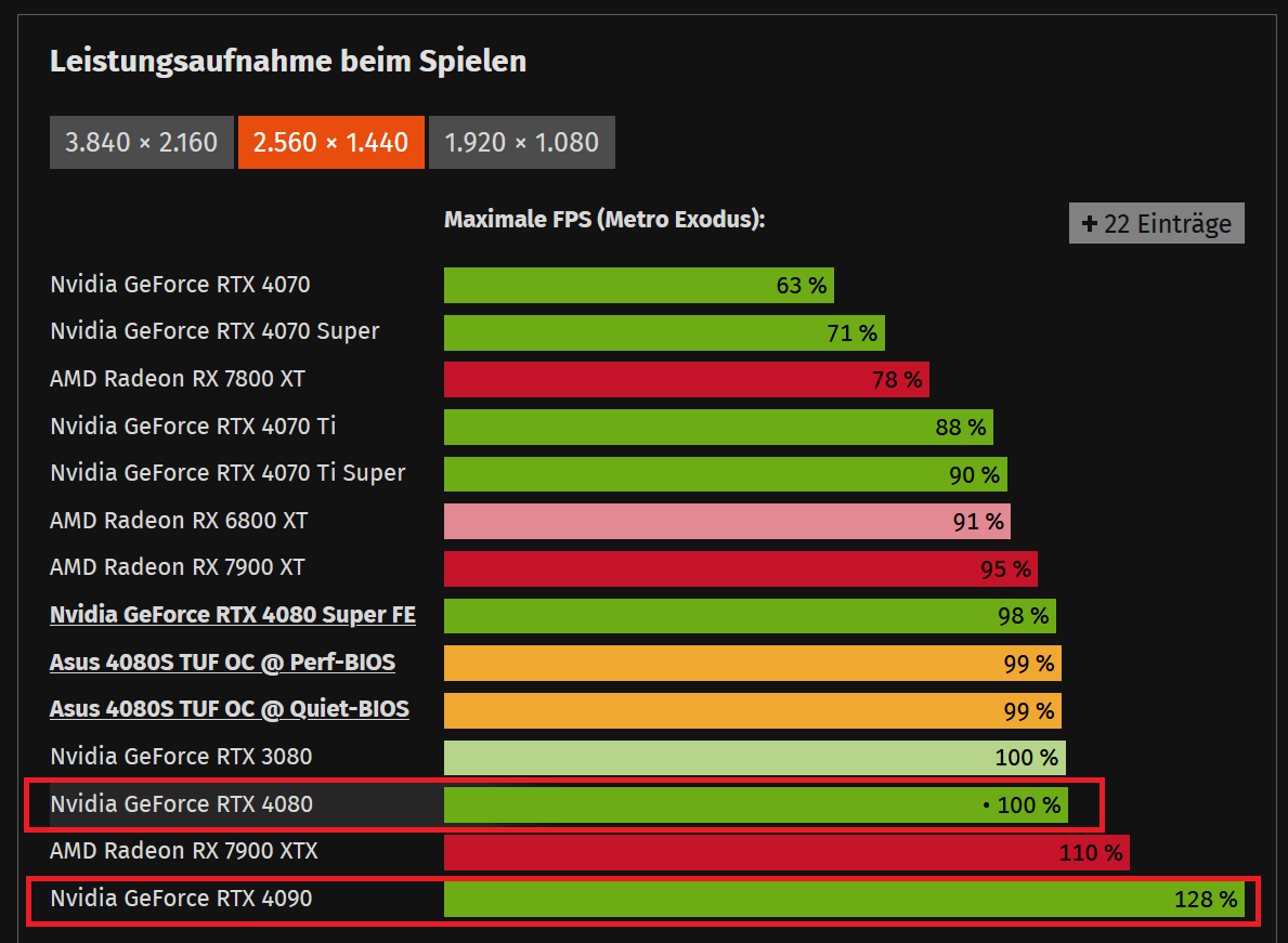 Du gehts aber stumpf von 45% in sämtlichen Auflösungen und im kompletten Spieleparcour aus, wenn du die Effizienz von der Durchschnittsperformance des kompletten Spiele-Mixes ableitest und bei den Stromaufnahme-Unterschieden nur die Extremfälle berücksichtigst.