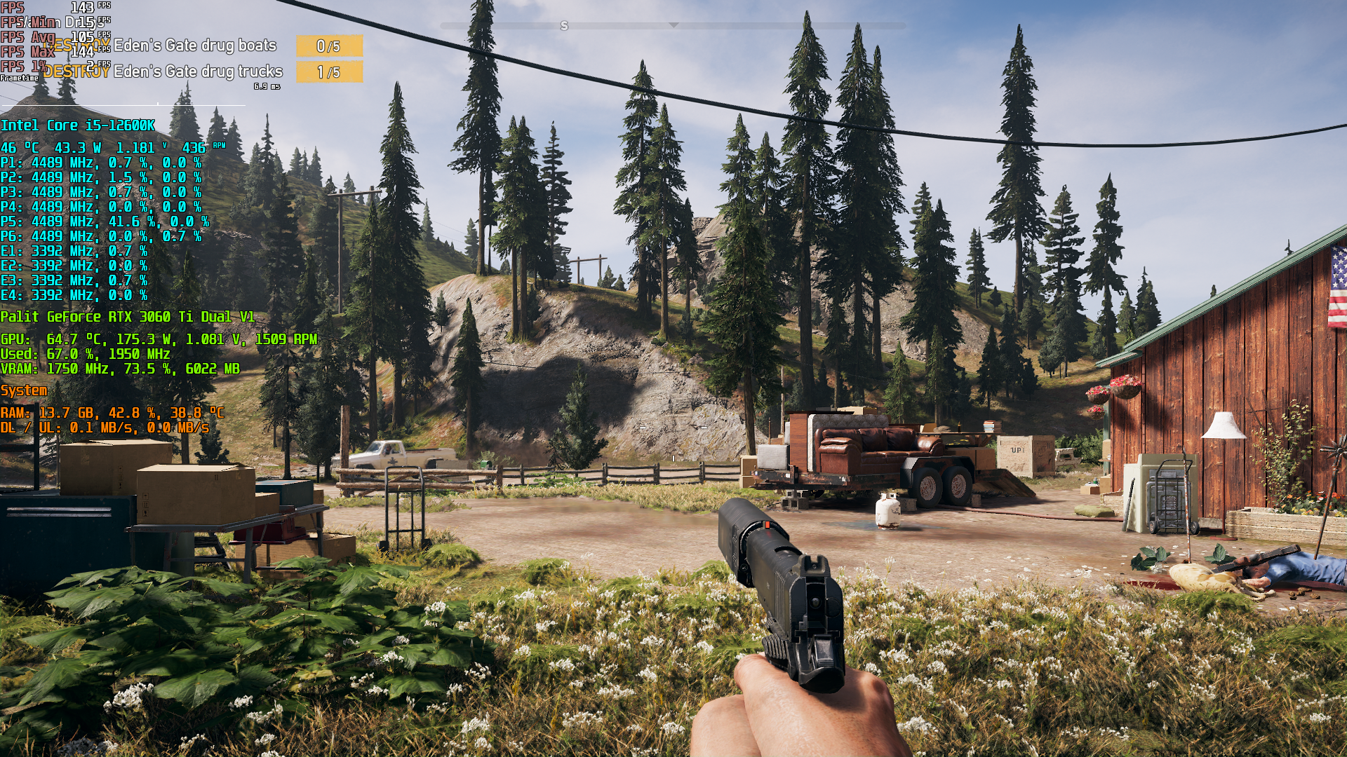 Also wechseln wir das Spiel, erneut zu einem, wo ich weiß, dass man ingame die FPS auf den zum Vergleich nötigen Wert von 144 FPS stellen kann -> Far Cry 5.