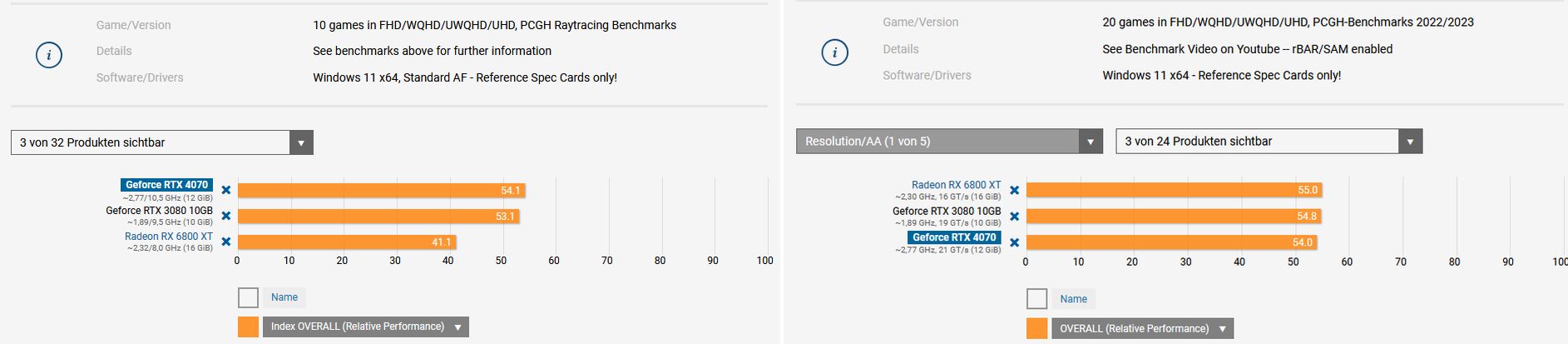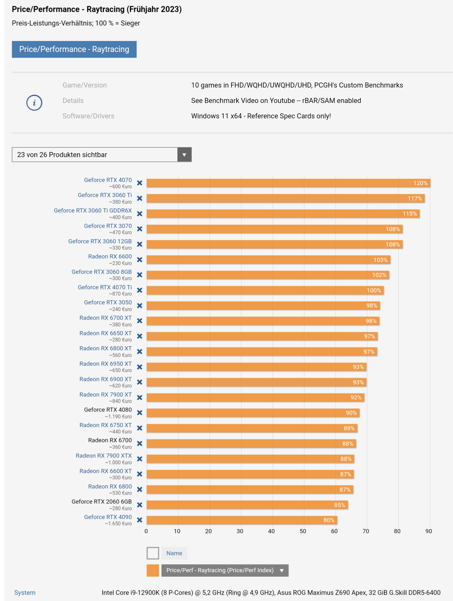 muss dann halt nur vom Game auch unterstützt werden, ansonsten bekommst für den selben Preis der 4070, mit einer 6950XT die Rasterizing Leistung einer 3090Ti,