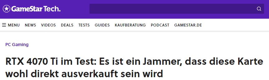 Kannste bitte mal den Shop verlinken, wo es die 899€-Exemplare gibt.Jan schrieb:Artikel-Update: Inzwischen ist auf ComputerBase der Test der GeForce RTX 4070 Ti in Form von zwei Custom-Designs erschienen.