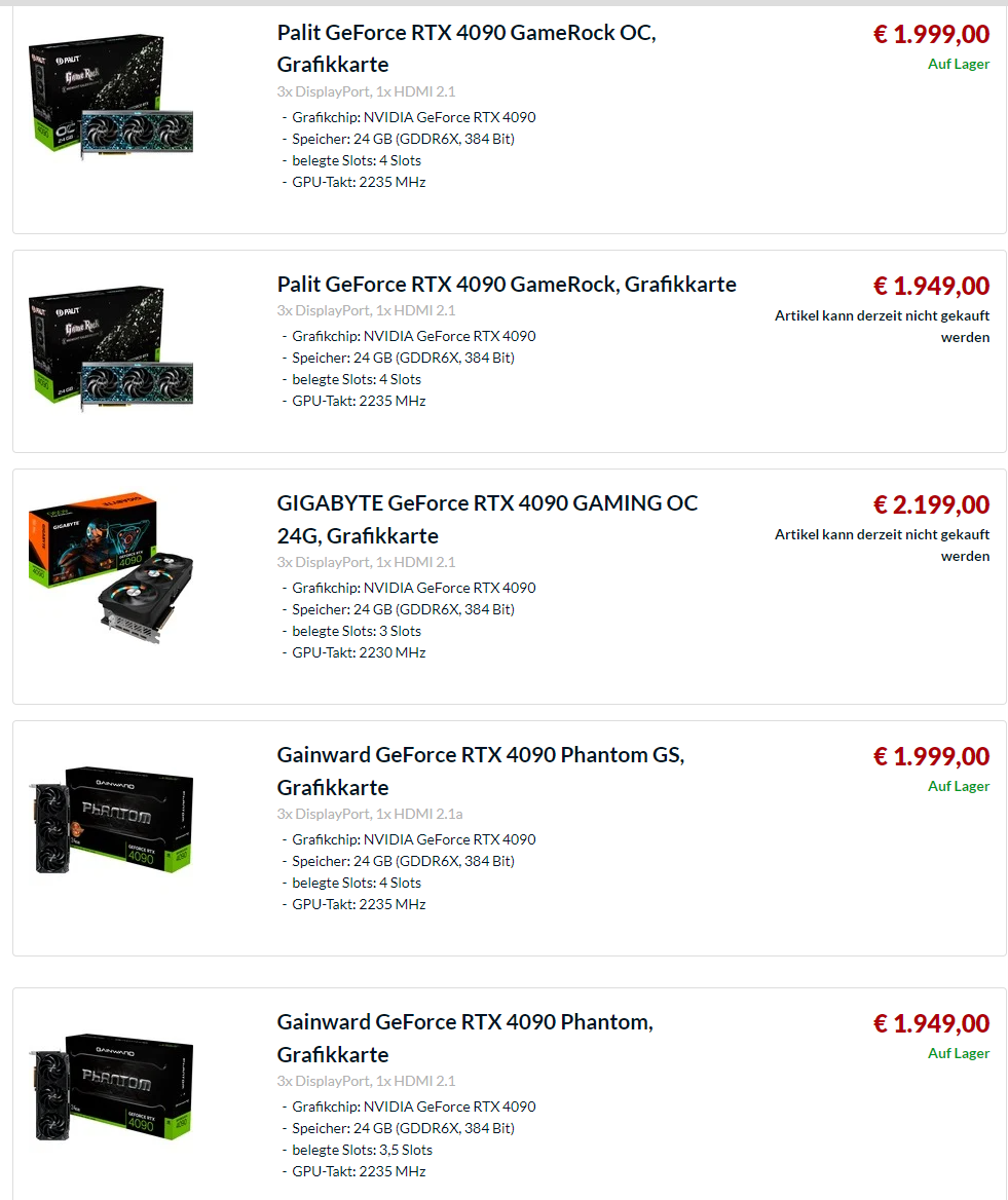 Dass die RTX4090 so schnell ausverkauft ist hätte ich nicht gedacht. Von wegen Wohlstandsverlust.