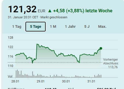 Nein, kein Zufall, sondern einfach die Folge der vor einer guten Woche extrem gefallenen Kurses. Börsen 1x1.Gravlens schrieb:Natürlich, alles Zufall, wie immer, das der Aktienkurs genau vor dem Tag des Releases der 5090 noch gefallen ist und es eine Kehrtwende gab war natürlich auch purer Zufall.^^