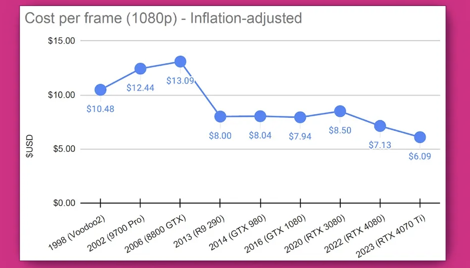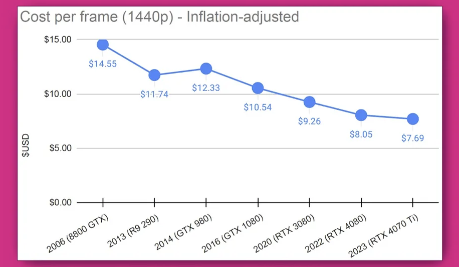 Ich halte es für eine der absurdesten Ideen überhaupt, Fortschritt bei Graka-Preisleistungsverhältnissen daran zu messen, wie viele FPS sie in