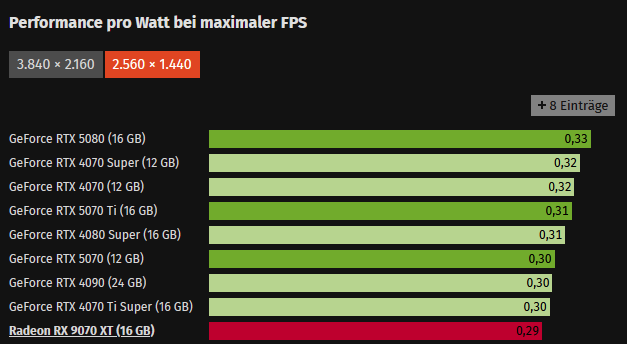 Meine 9070XT wischt in der Tabelle mit allen Stock Karten den Boden auf. Ja und betreibe ich die so? Nein, die läuft meistens ineffizienter im max OC. Oder gleich im FPS Limit.