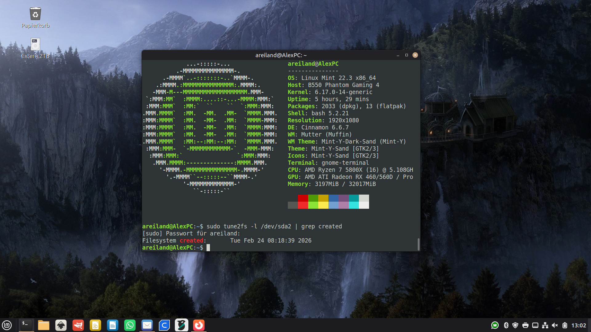 So neu ist Linux nicht mal für mich, weil ich immer mal die eine oder andere Distri laufen gehabt hab. Bloss hab ich den endgültigen Umzug bisher nicht vorgenommen. Inzwischen hab auch ich umgedacht und Anfang der Woche angefangen zunächst meine Daten SSD leerzuräumen und mir dann ein paar aktuelle Distris anzusehen. Bei der Mint Cinnamon bin ich dann hängen geblieben, weil die mir wegen ihrem Look und Feel auf Anhieb richtig gut gefallen hat.
