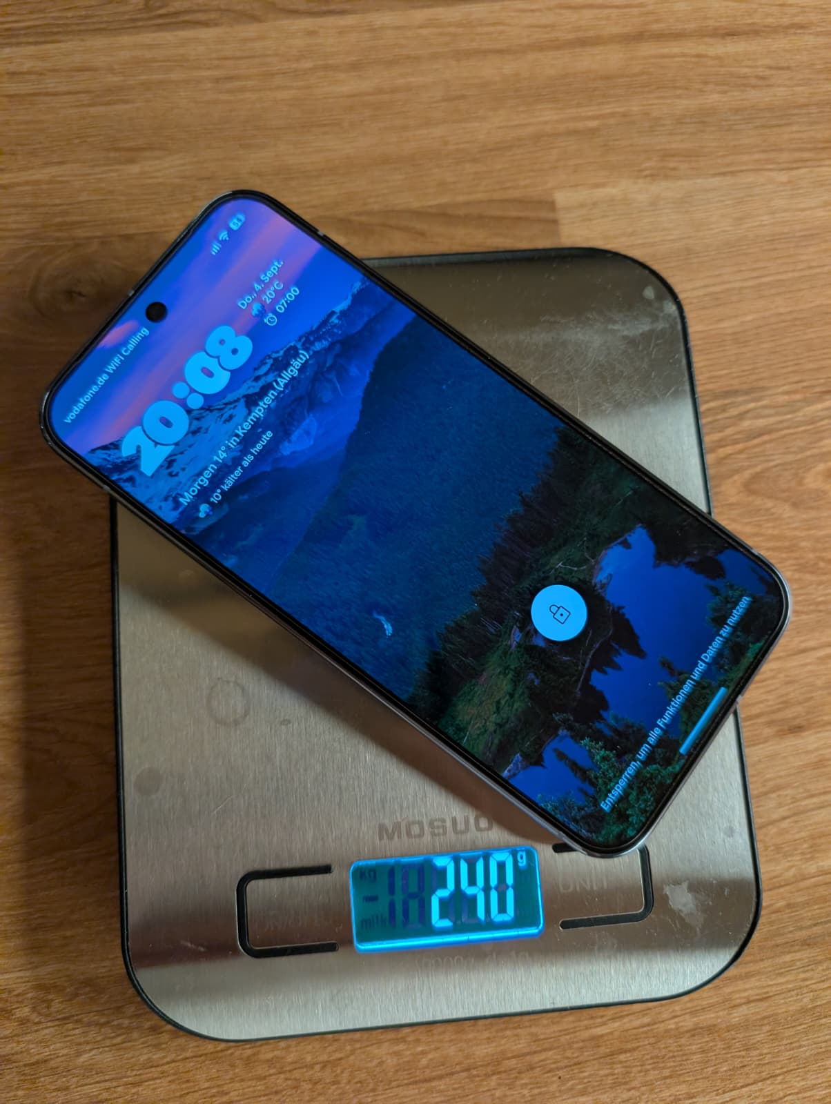 Mein IPhone 15 Plus hat 230g - gerade mal gewogen.tecjonny schrieb:Nach einer Woche Nutzung bleibt ein negativer Eindruck permanent... Das Gewicht!