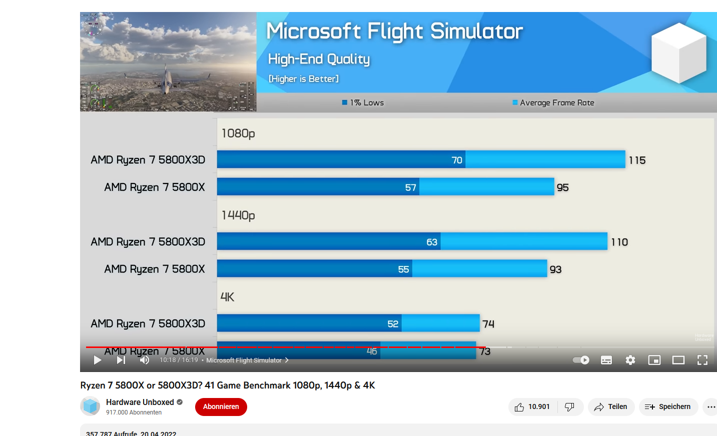 Und, wie ist der Unterschied im FS2020? Das Spiel wäre für mich der einzige Grund einen 5800X3D zu kaufen und Anno1800, wobei9 das einwandfrei läuft. .A.Xander schrieb:Da bin ich auch mal gespannt, hab im MFS 2020 gestern noch einen schönen niedrigen Rundflug über Tokio´s Sehenswürdigkeiten mitgeschnitten. Bin mal auf den Unterschied gespannt.