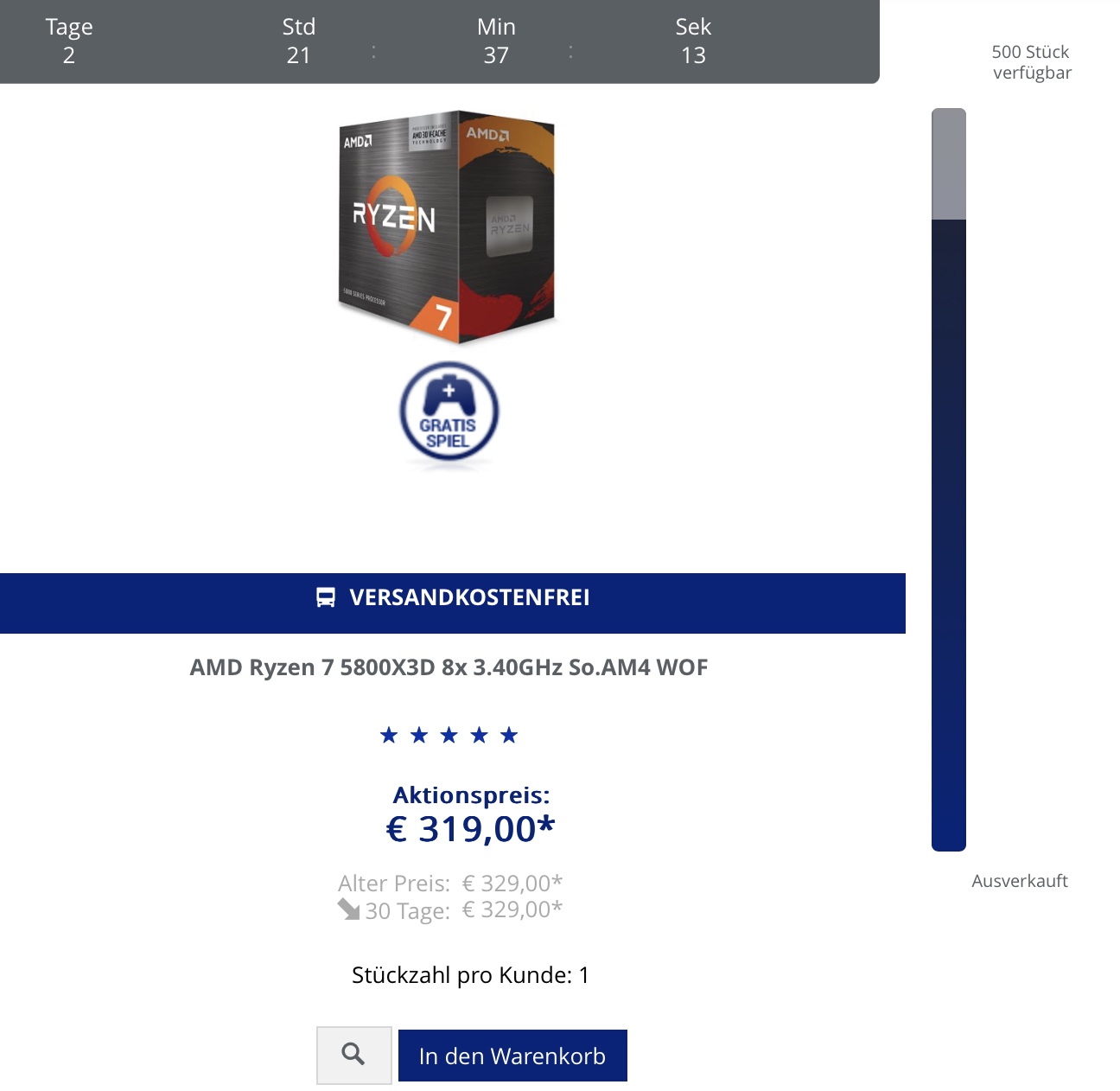 Der Preis über den Link von mir normal zum Shop liegt mittlerweile auch bei 319€, ggf. gabs da eine (un)gewollte Diskrepanz. Danke, hatte die Seite auch gar nicht auf dem Schirm, immer nur Mindstarmsv schrieb:Über die „Damn!-Deals“-Seite für 319€ 😉.