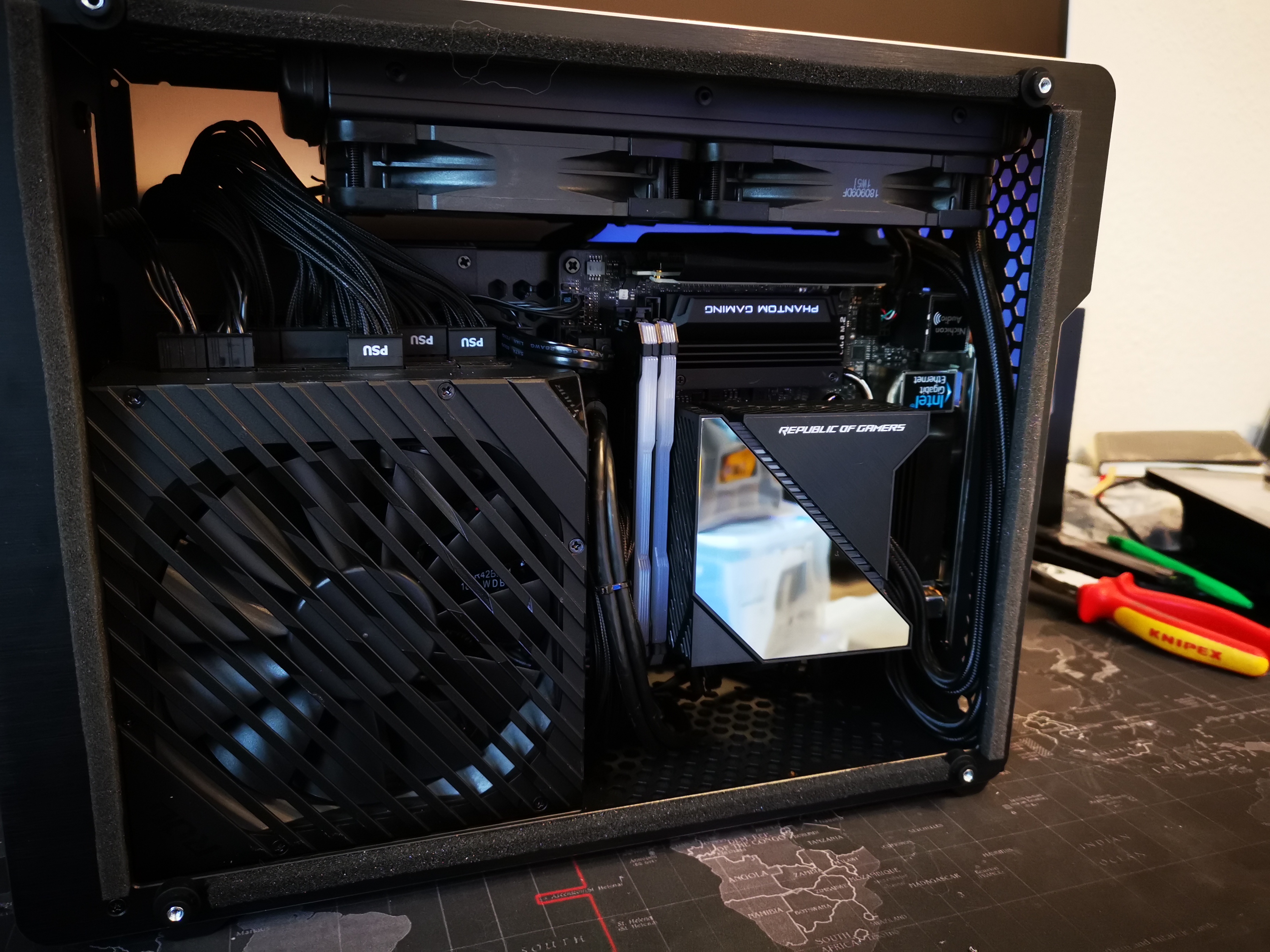 deine Kabellösung vom Netzteil nach hinten finde ich gut, so hat der Lüfter mehr Platz zum Luftschnappen.