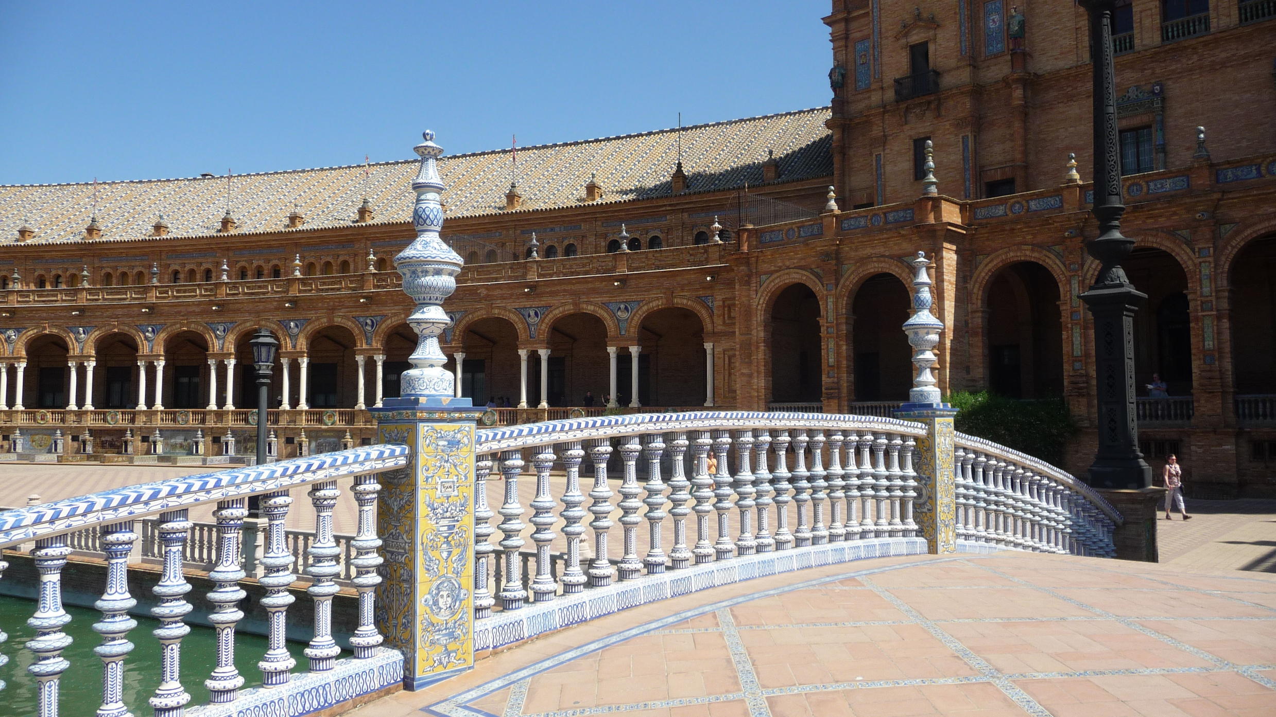 Ich denke dann, dass es sich um diesen einen Platz in Sevilla, Spanien handelt. Wie der heisst kann ich dir aber nicht sagen. Aber der ist im Halbkreis angeordnet und es geht n "Graben" durch. Mit mehreren Brücken drüber. Ich meine es waren zwei oder drei