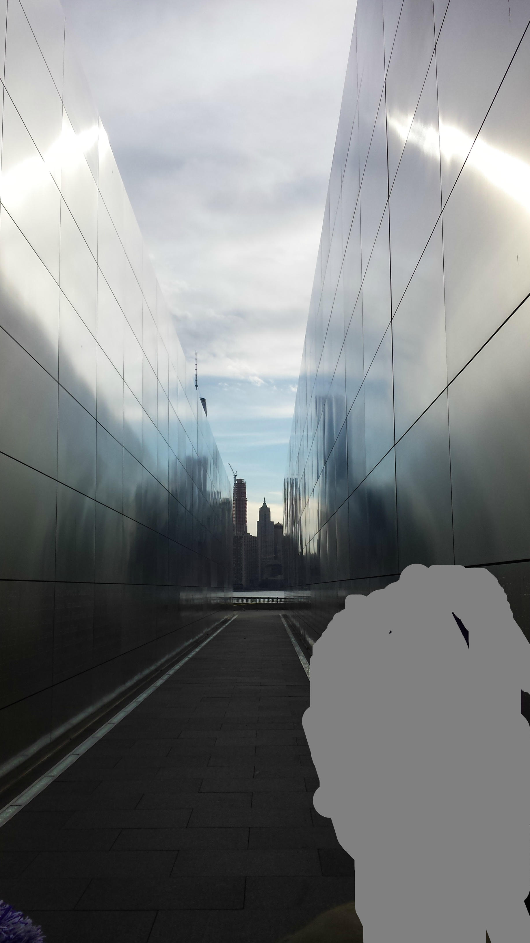 Close enough wuerde ich sagen. Das Bild zeigt ein Monument, was "Empty Sky Memorial" heisst und auf den leeren Himmel zeigt, wo frueher die beiden Tuerme gestanden haben und links ist, halb verdeckt und trotzdem erraten, dass One World Trade Center. Es ist auf der anderen Seite vom Hudson River.