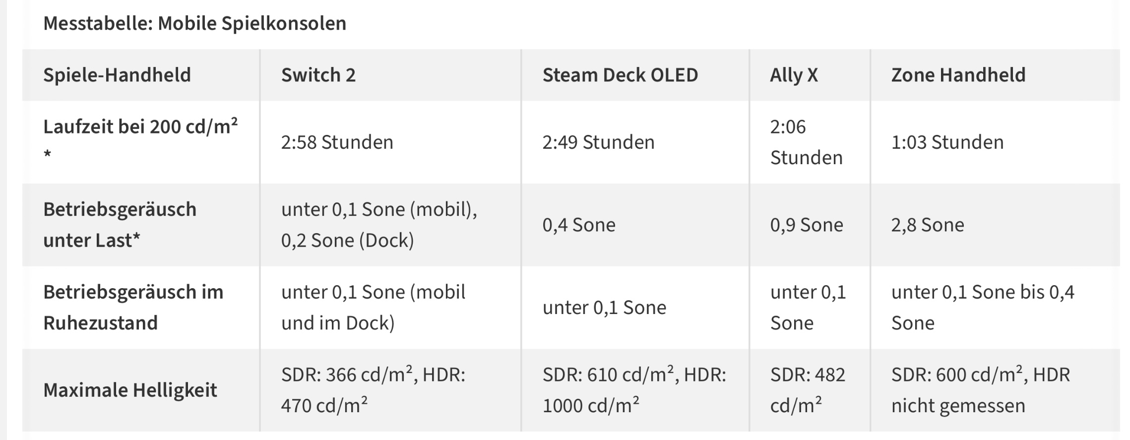 (Oft wie in dem Video, dass hier verlinkt ist zur Switch 2 wird ja z.B. mit weniger, hier 80%, Helligkeit getestet. Switch 2 mit 420nits z.B. Da sollte man das ally x mit 491nits natürlich entsprechend einstellen.)