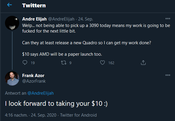 Tenor vor einem halben Jahr... "wenn Big Navi mal überhaupt ne 2080ti kassiert, können sie froh sein... "...
