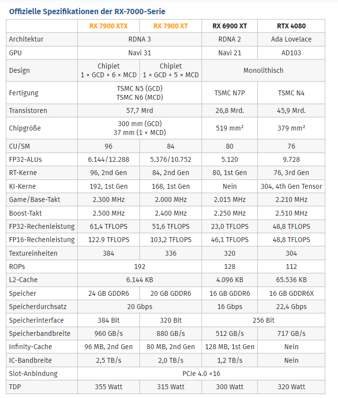 Und 80 zu 84CU also 6900XT zu 7900XT resultieren in gut 30% mehr Leistung.. Is ja nicht so, dass die Einheiten schlechter wurden.