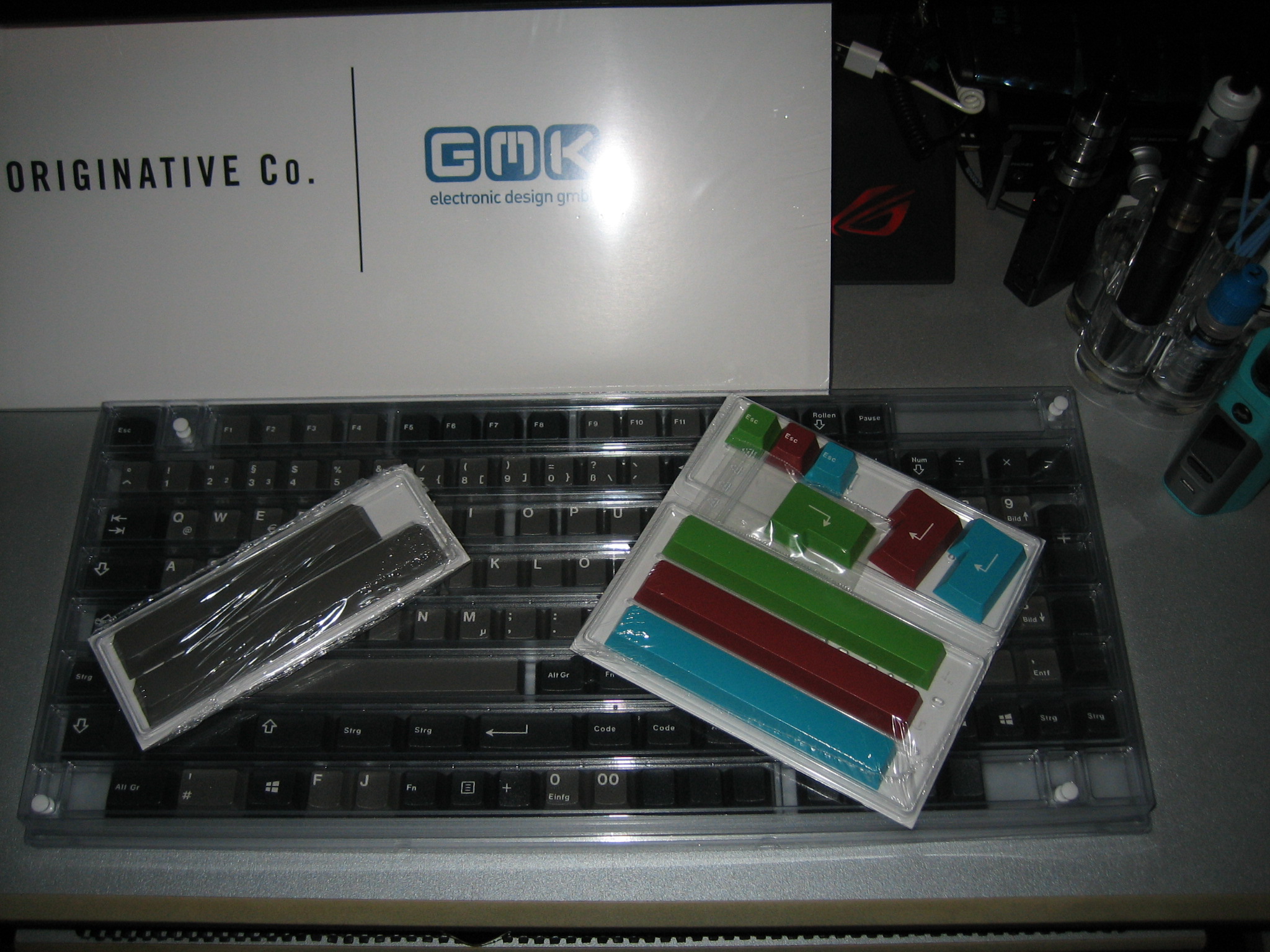 So hab meine CM Storm Rapid I - Cherry MX und mein Jelly comp Numpad mit blauen Schaltern mal um gebaut. So das es der Freundin natĂŒrlich gefĂ€llt, passend zur Decke mit Roten Akzenten. SchreibgefĂŒhl ist ja wie frĂŒher mit meinen alten Cherry-Tastaturen, echt super, kein Vergleich zu den originalen Kappen.