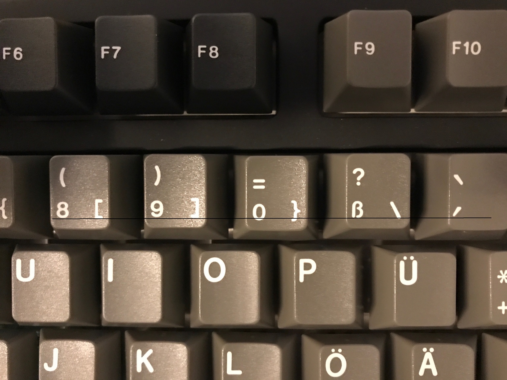 Wenn ich ĂŒber alle aktuell montierten Caps gucke, auf meiner TKL, dann fĂ€llt mir aktuell irgendwie die 0=} Taste ins Auge, sieht irgendwie so aus als ob die Beschriftung ein bissle weiter unten als bei den anderen Tasten ist.