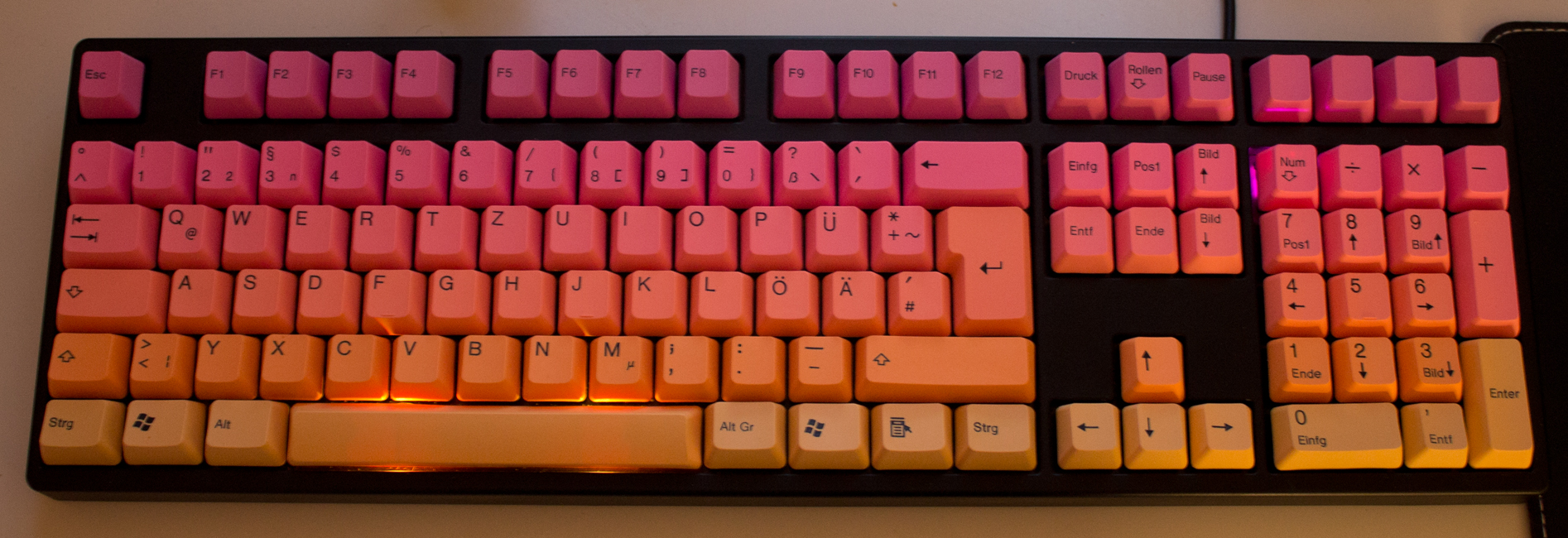 Habe die Caps jetzt auch getauscht, passen 1a, keine defekten dabei. Die Farben (Rainbow) sind toll, die Raue Oberfläche gefällt mir auch sehr gut. Leider passt die Leertaste nicht, lasse da jetzt die alte schwarze drauf.