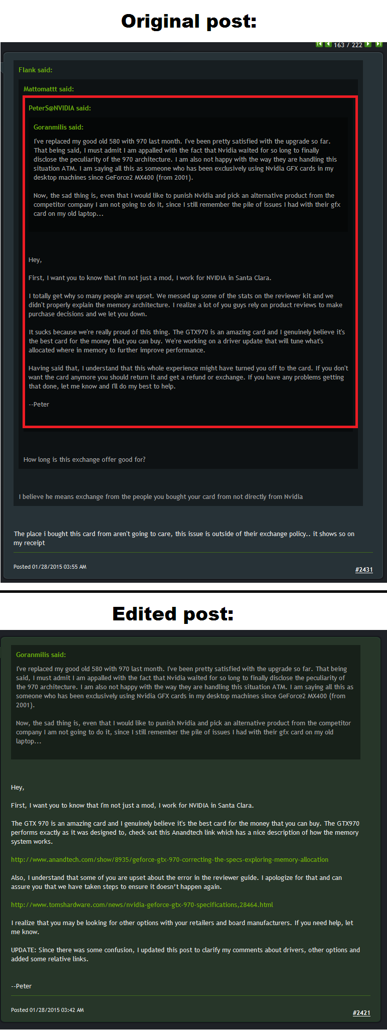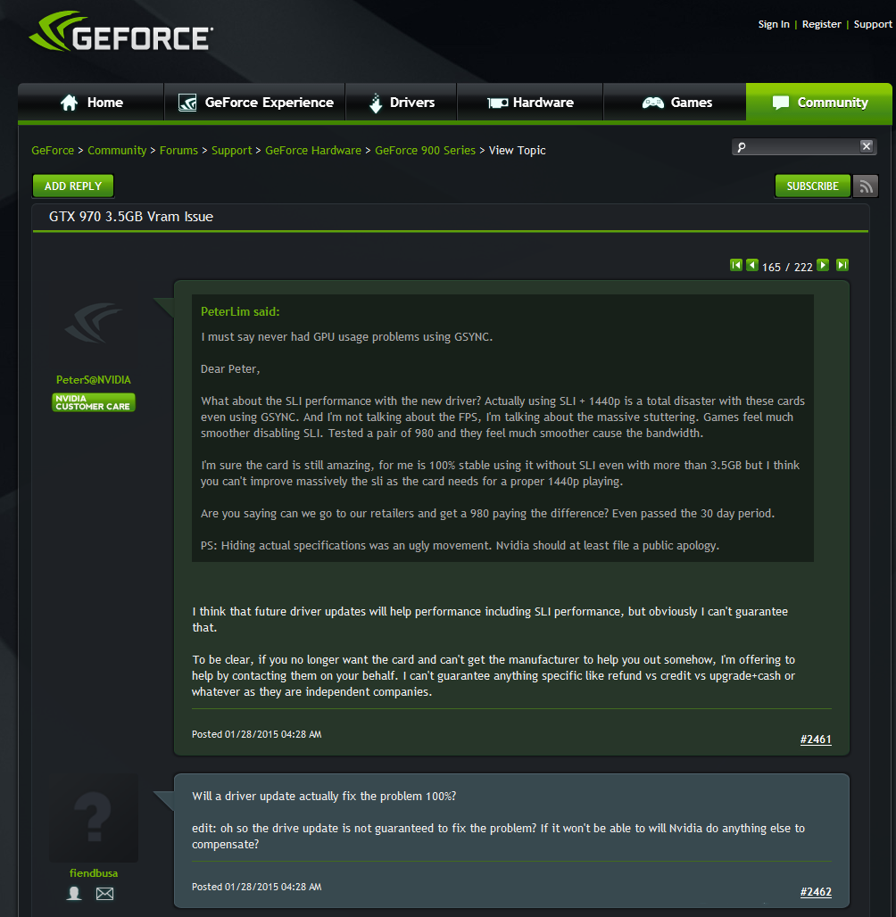 Zusammen mit dem Tweet, dass nvidia der Meinung sei, es läge kein Fehler vor, gefällt mir das grad nicht so gut.