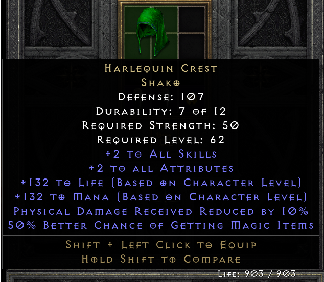Wenn du richtig auf Defensive gehen willst, packst du Sanctuary in ein +45 Shield. Damit hast du mit nem guten Roll +115 allres (!!!) auf einem einzigen Item, das gibt dir maximalen Spielraum bei deinem restlichen Gear.