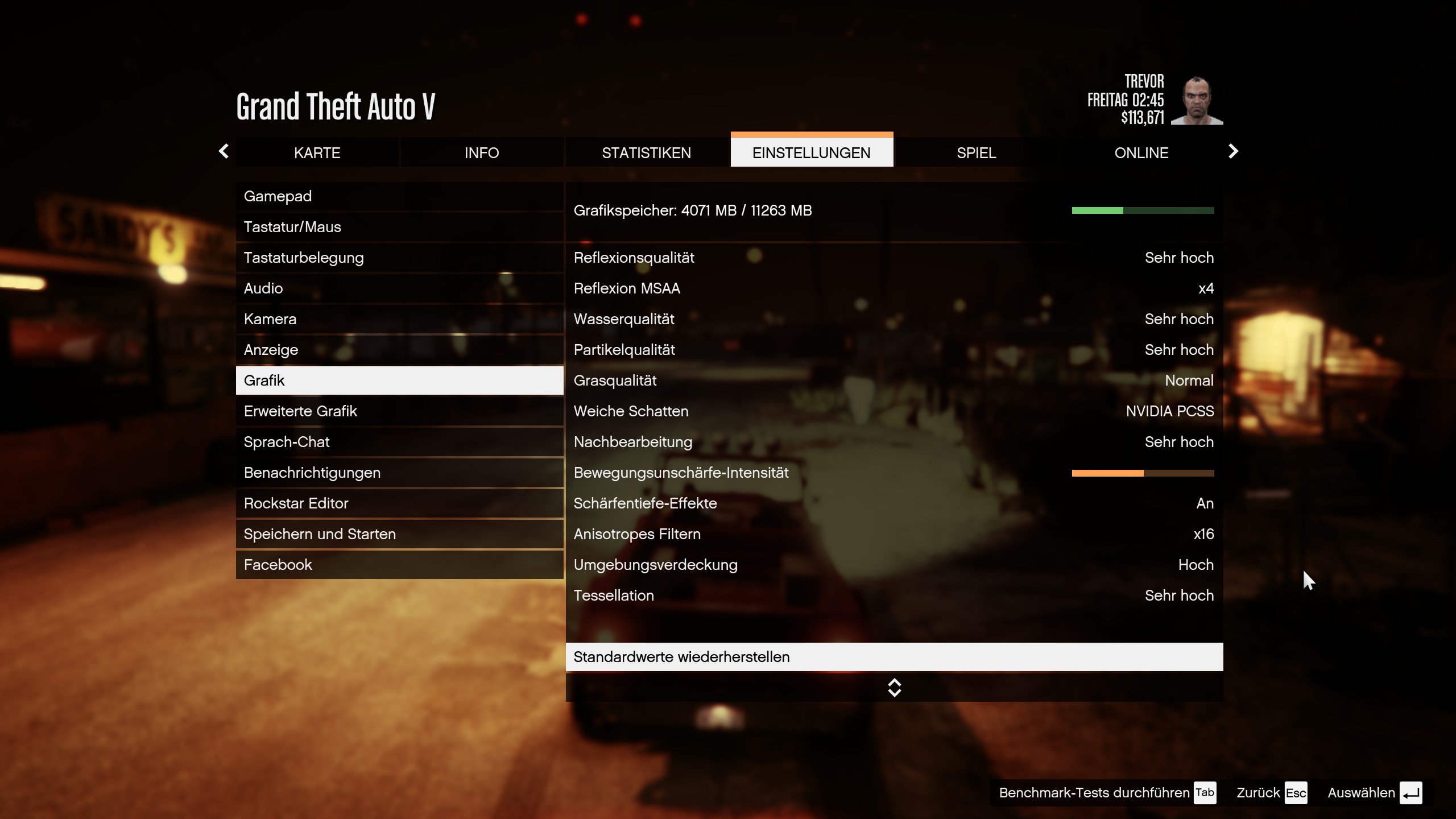 Habe bei GTA 5 folgendes Problem. Ständig funktioniert Vsync nicht richtig. Dies habe ich behoben, in dem ich über die Nvidia Systemsteuerung Vsync dauerhaft eingeschaltet habe und bei GTA 5 deaktiviert habe. Trotzdem wundert mich das sehr, dass ich so schlechte FPS habe. Ist GTA 5 so ein starker Ressourcen fresser? oder mache ich bei den Einstellungen was falsch. Einstellungen sind laut Nvidia auf Optimal.