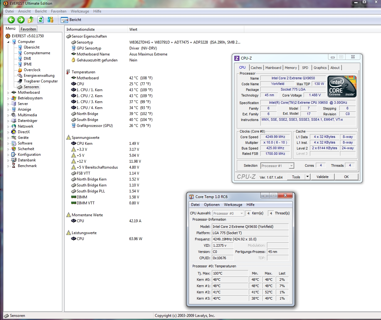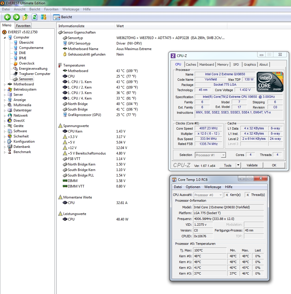 Nach einem Reboot unter Last ließ sich die CPU nun garnicht mehr an die 3Ghz Grenze bringen selbst 2,8Ghz bereiten Probleme.