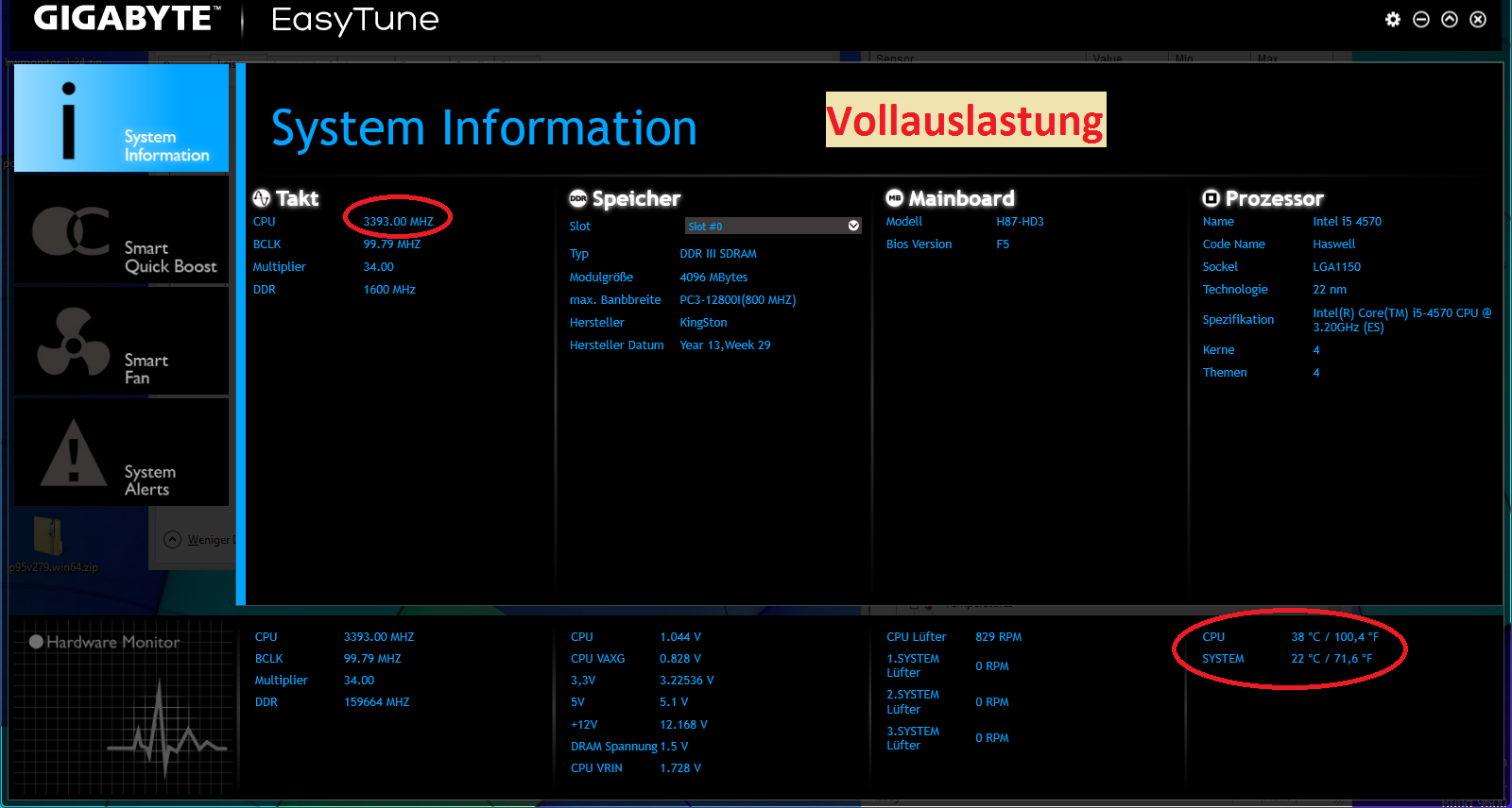 EasyTune: CPU 38°C und System 22°C
