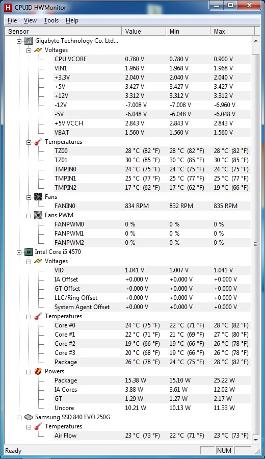 HWMonitor: CPU 28 - Bei System bin ich mir nicht sicher, welche Werte ich nehmen soll. Wie gesagt, bin hardwaretechnisch noch Laie.