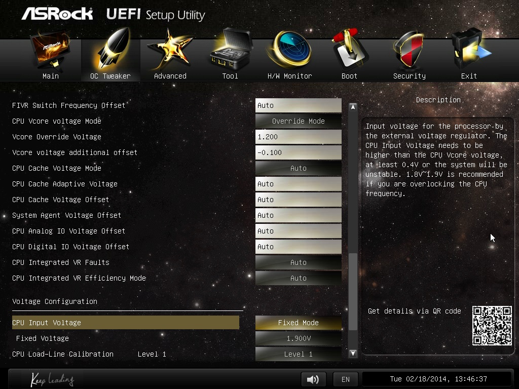 Zweitens solltest du bei CPU Input Voltage nicht fixed Mode wählen sondern erstmal Auto und schau wie es damit geht.
