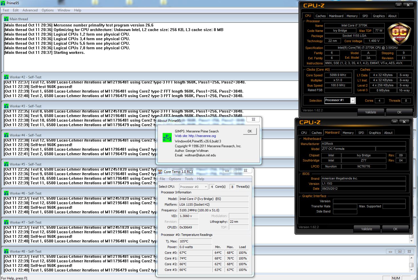 Mein Problem mit dem ASRock Z77 Pro3 und dem nicht dauerhaft hochgehaltenen Takt unter 100% Load liegt an den VRMs auf dem Board. Das Board hat eine interne Schutzfunktion, die nicht umgangen werden kann und schaltet den Multiplikator auf den Standardwert, sobald die VRMs 60°C erreichen.