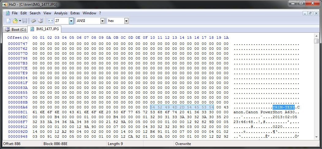 Dann mit HxD (als Admin) die Partition öffnen (Menü Extras->Open Disk), nach dem String suchen.