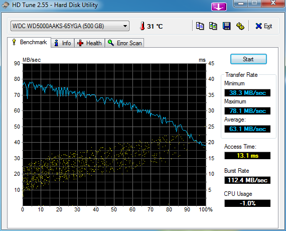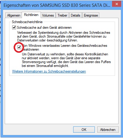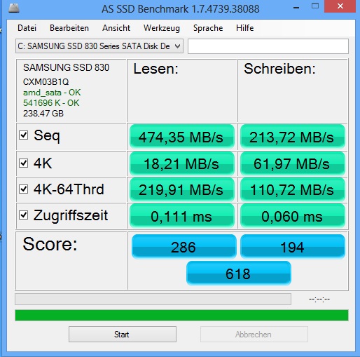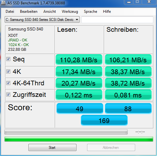 SSD ist eine Samsung SSD 840 mit 250 GB. Windows ist auf der SSD installiert. Erstmal hier die Werte